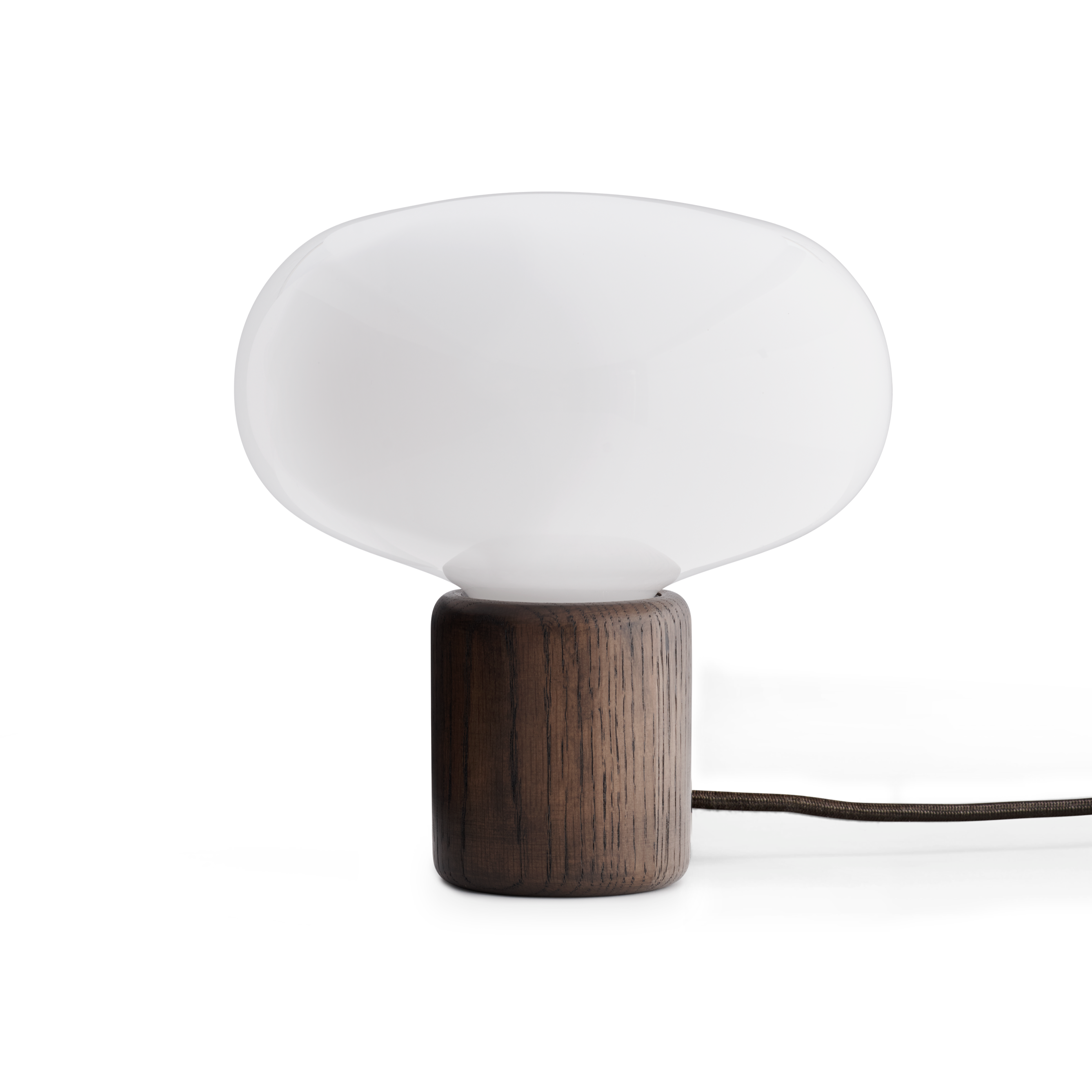 Karl-Johan Tischlampe Schillerner Glas mit einer geräucherten Eichenbasis