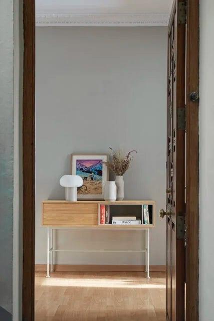 Konsole Mit Yoko können Sie Objekte anzeigen, die an sich eine Heimdekoration sind. Ein innovativer Ansatz zur Schaffung von Möbeln und einer Tradition, die der Ordner aller Projekte der spanischen Marke Teuat ist, ist in Lösungen wie der Farbauswahl sichtbar. Pastell Beige und natürliches Eichenfurnier sind eine Kombination, die jeden Look anzieht.