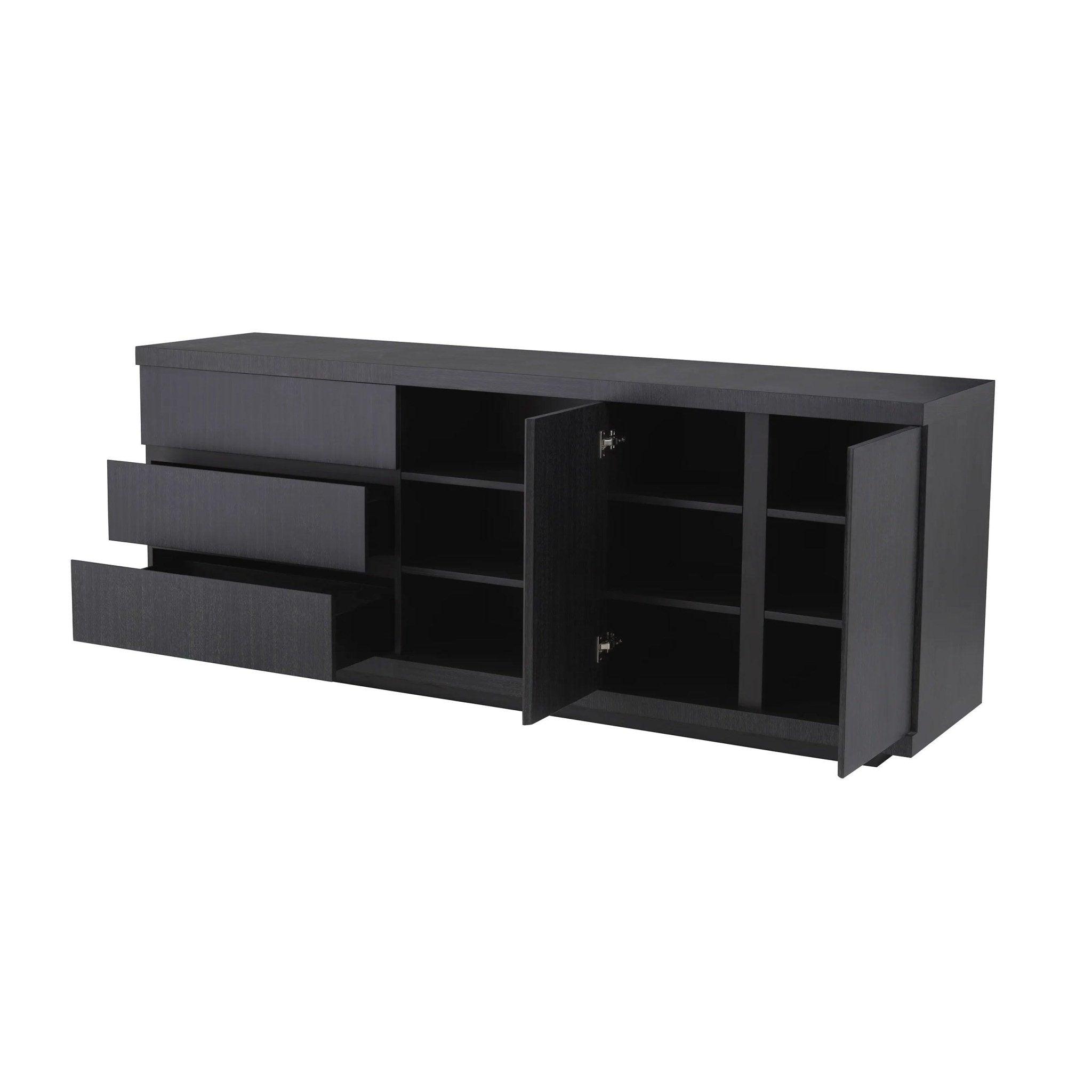 Crosby Dresser ist nicht nur ein Möbelstück, sondern auch ein Element, das Ihrem Raum Charakter und Eleganz verleiht. Seine einfache und gleichzeitig solide Konstruktion macht es zu einem hervorragenden Element, das in modernen Innenräumen verankert ist. Beenden mit Furnier von Coal Oak Adds addiert Eiche Dressing Nicht nur ein einzigartiger Charakter, sondern auch eine natürliche Eleganz. Die Graphitfarbe verleiht ihm einen modernen und mysteriösen Charme und erzeugt eine harmonische Wirkung mit einem ausdrucksstarken Holzfinish.