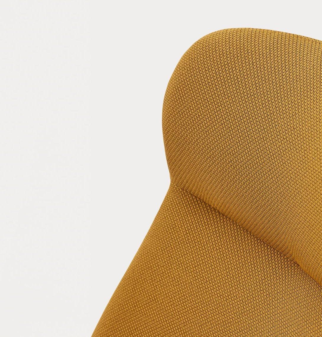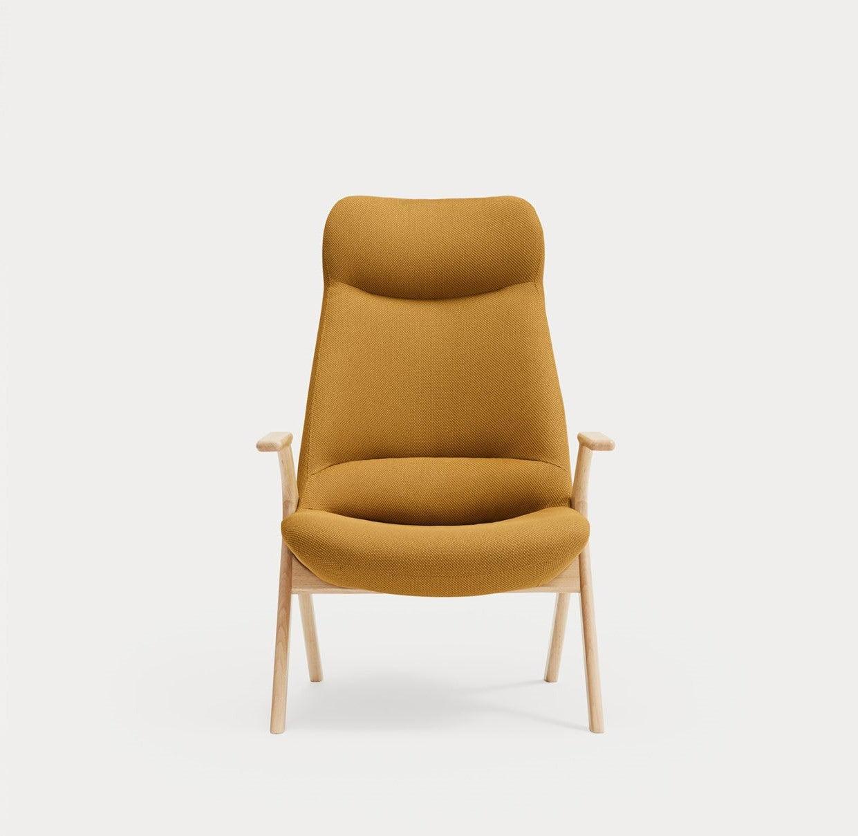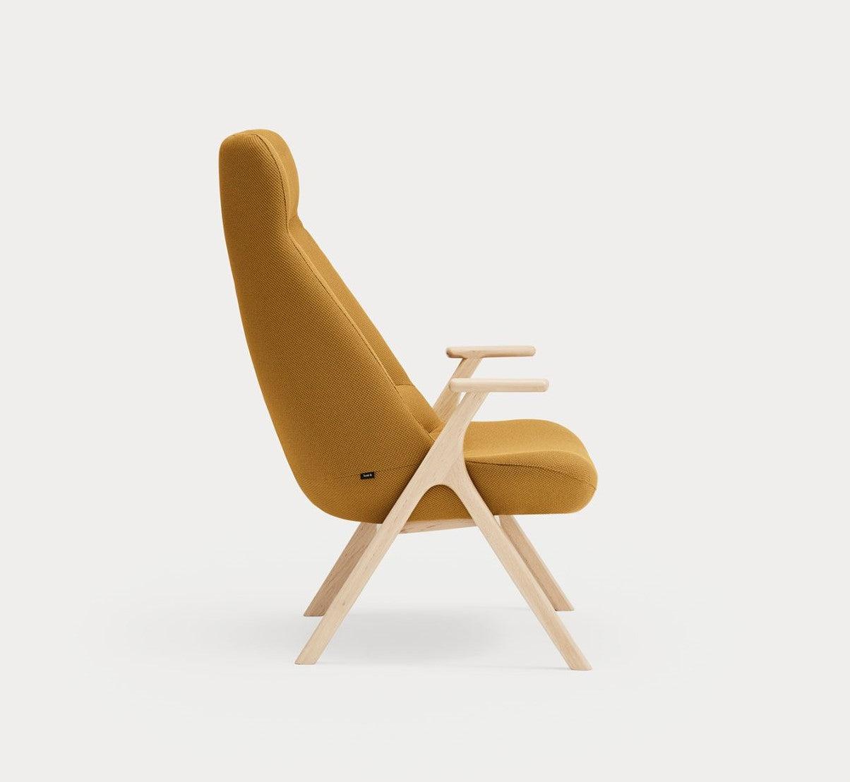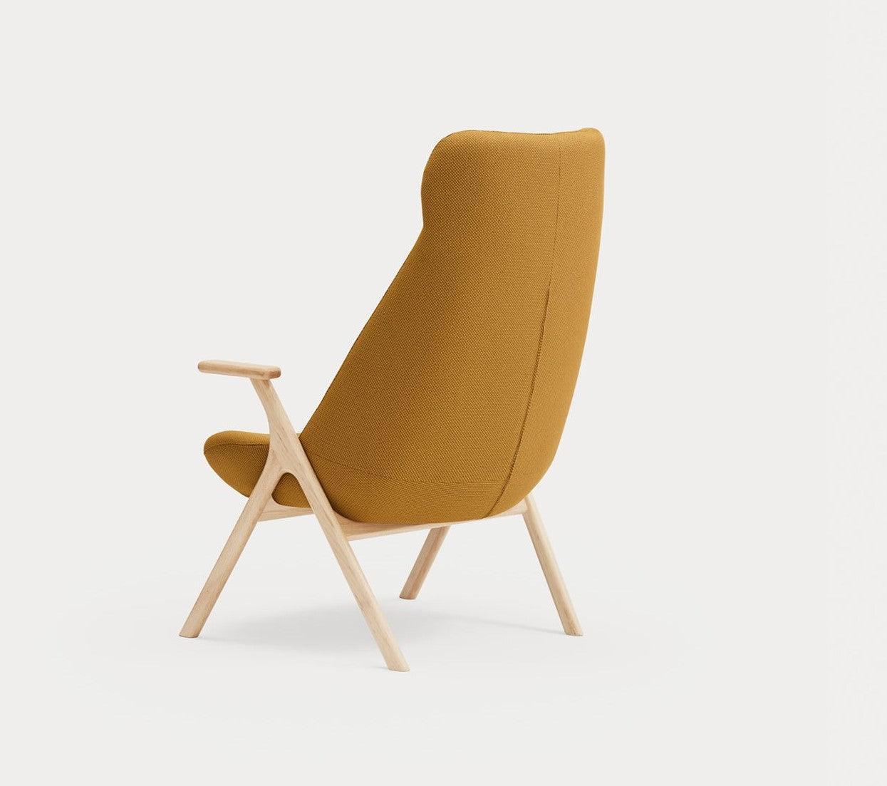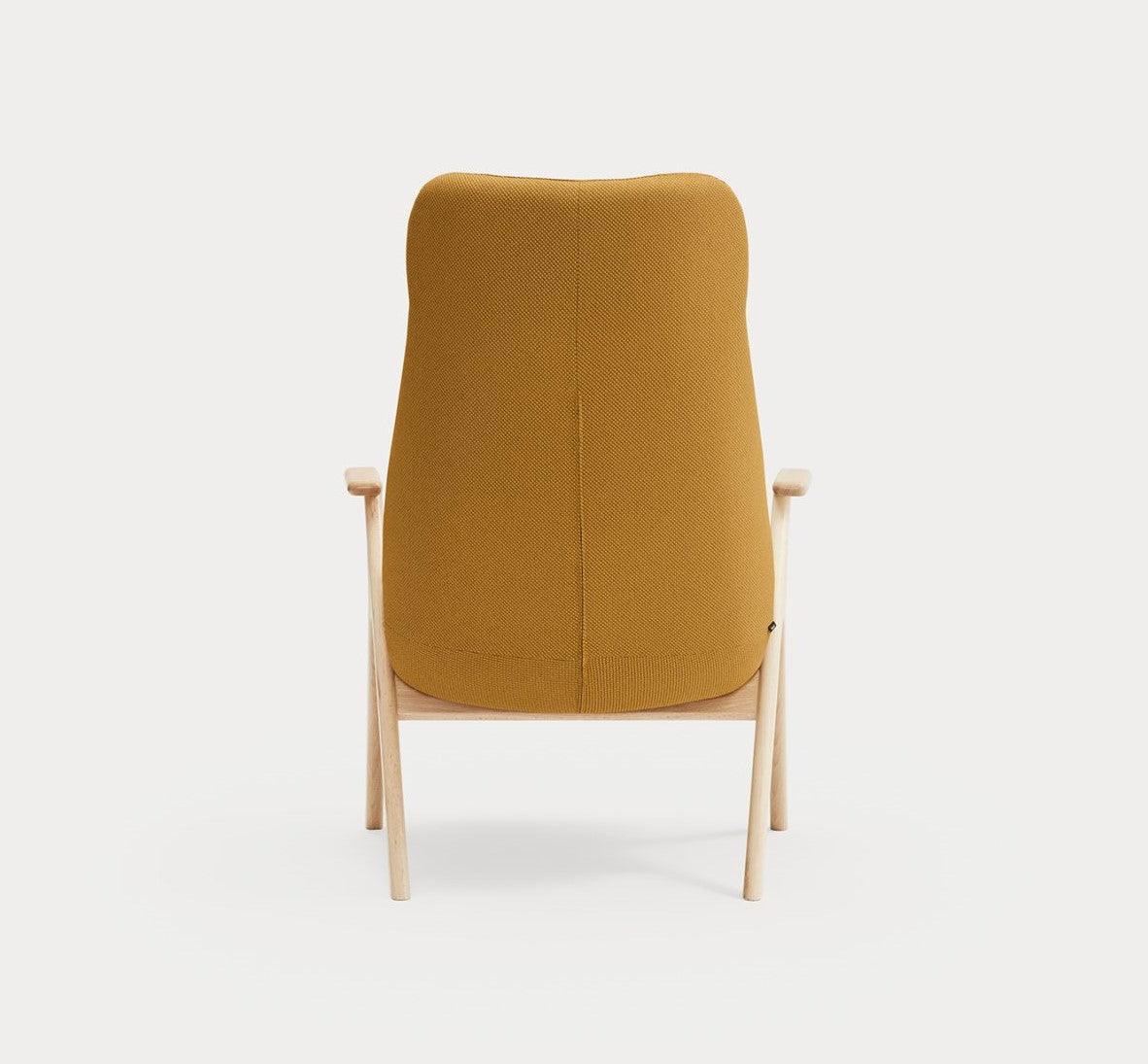 Fotel DINS wysoki musztardowy z drewnianą podstawą Teulat    Eye on Design