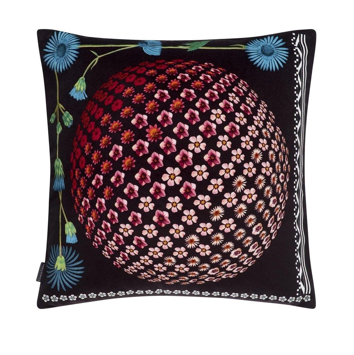 Aus luxuriöser Satin -Baumwolle, Kissen Cosmos Eden verführt nicht nur seine samtige Berührung, sondern strahlt auch Eleganz und Stil aus. Das geometrische Muster auf einer Seite betont einen modernen Ansatz zum Design und erzeugt eine dynamische und räumliche Komposition. Die Blumenveröffentlichungen ähneln einer Art Planet in einem Weltraumgarten.