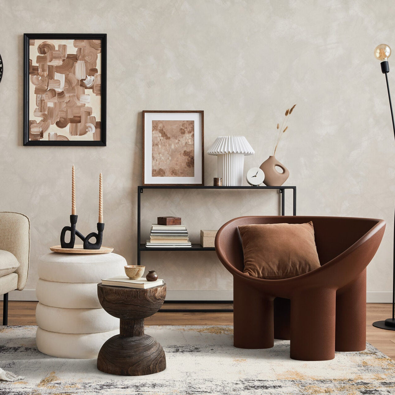 Teppich DECO RUGS beige mit Senfgelb und Schwarz