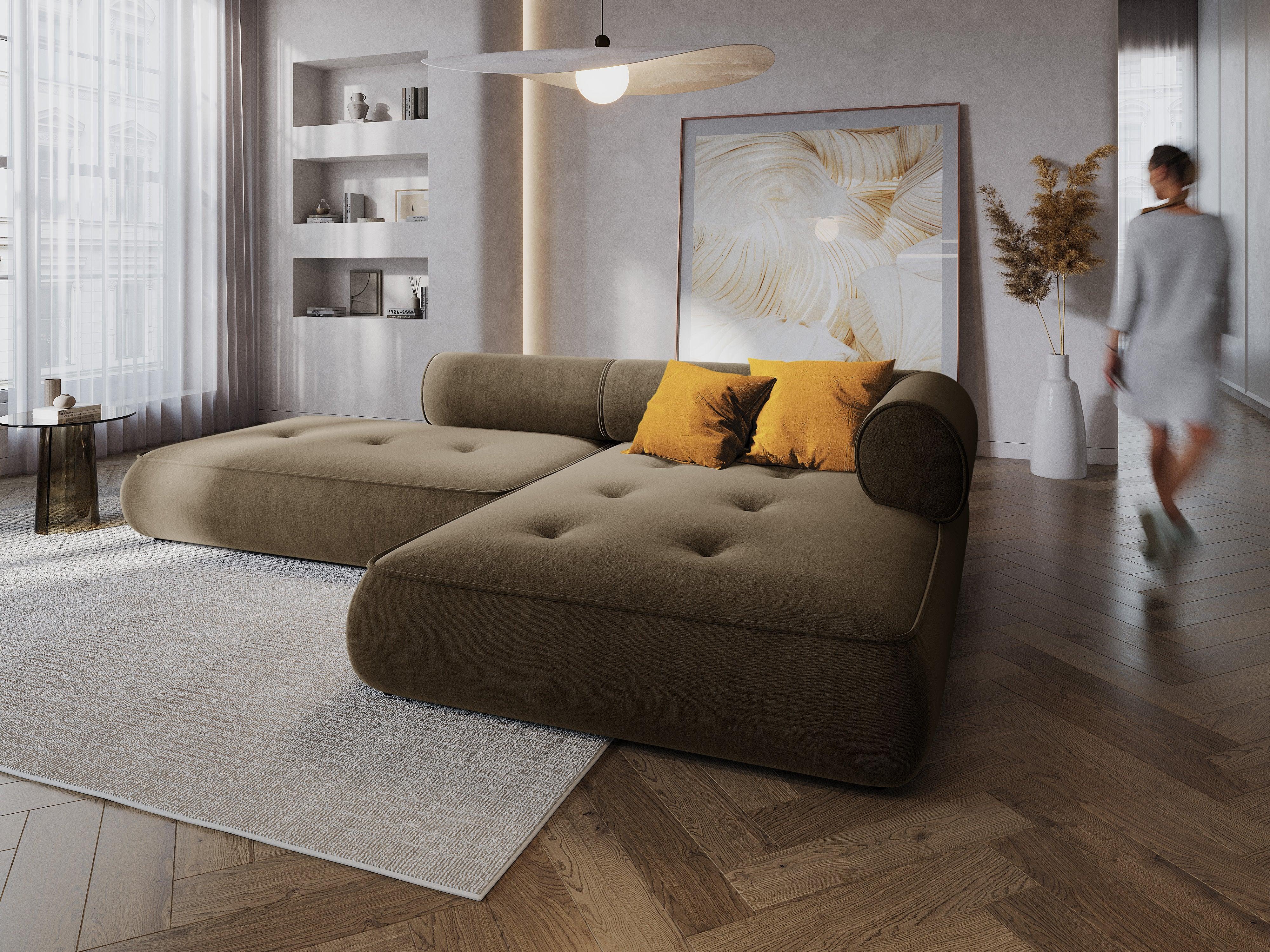 Narożnik w tkaninie szenilowej prawostronny otwarty LILY szarobrązowy Maison Heritage    Eye on Design