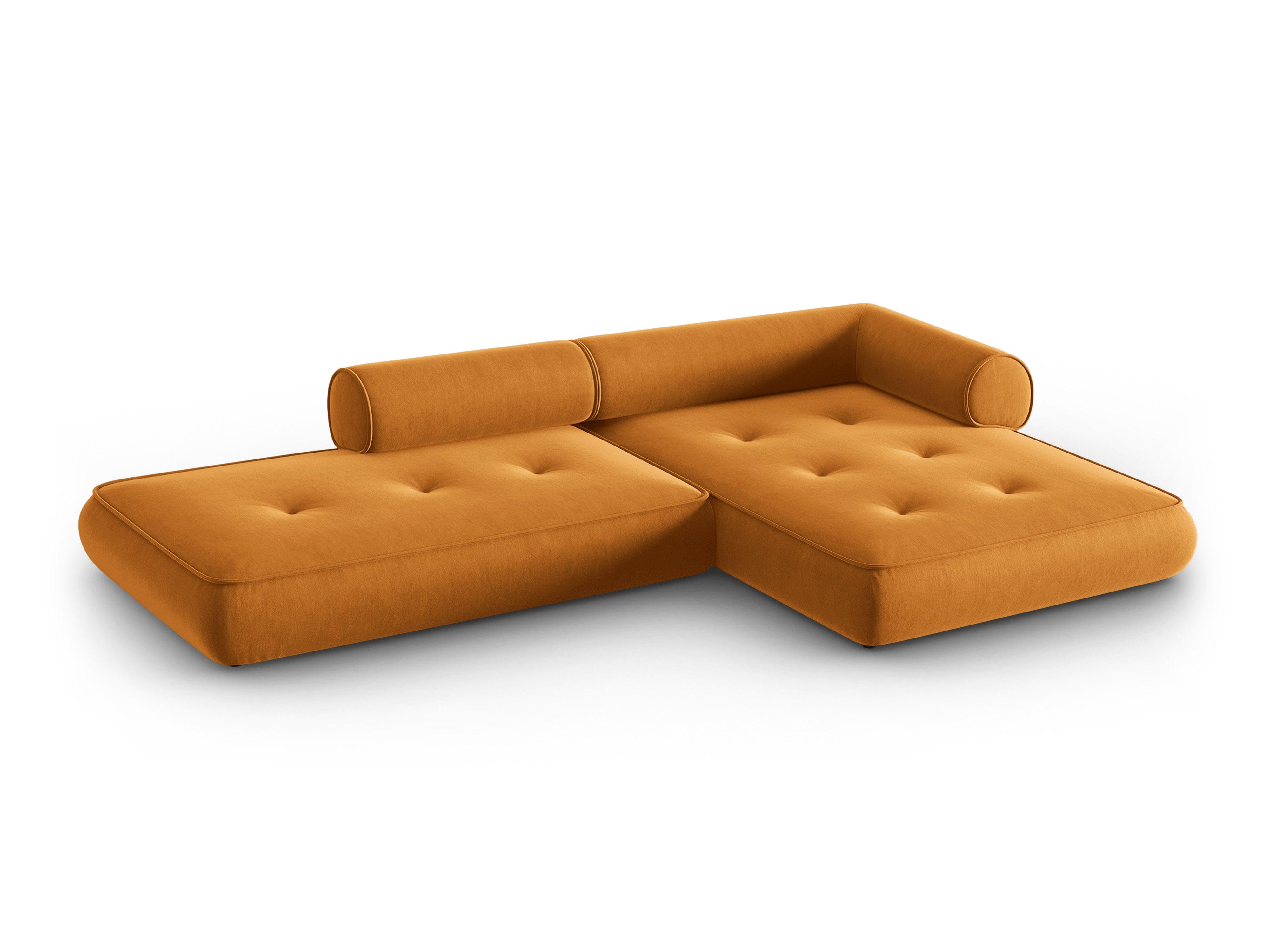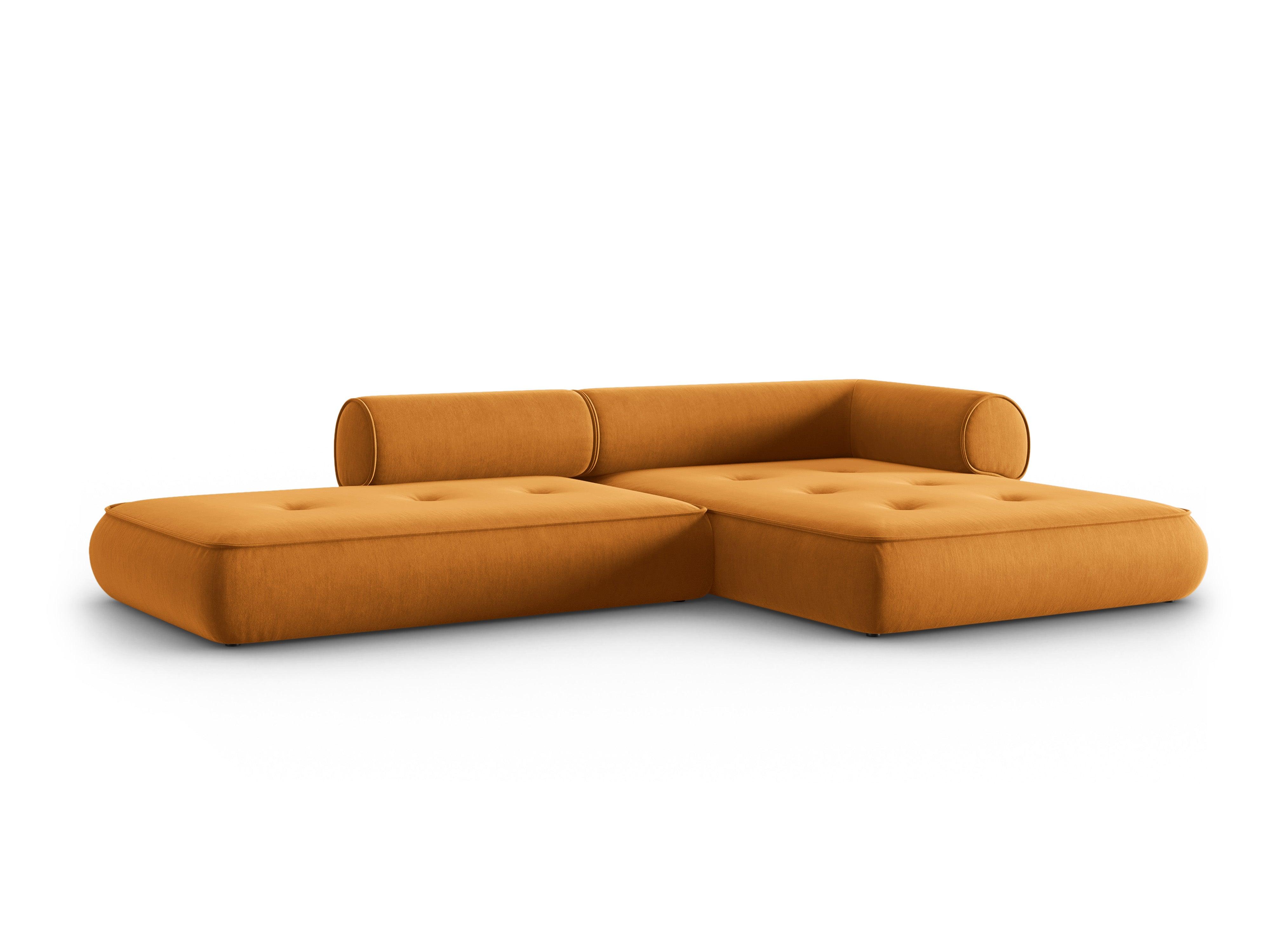 Narożnik w tkaninie szenilowej prawostronny otwarty LILY musztardowy Maison Heritage    Eye on Design