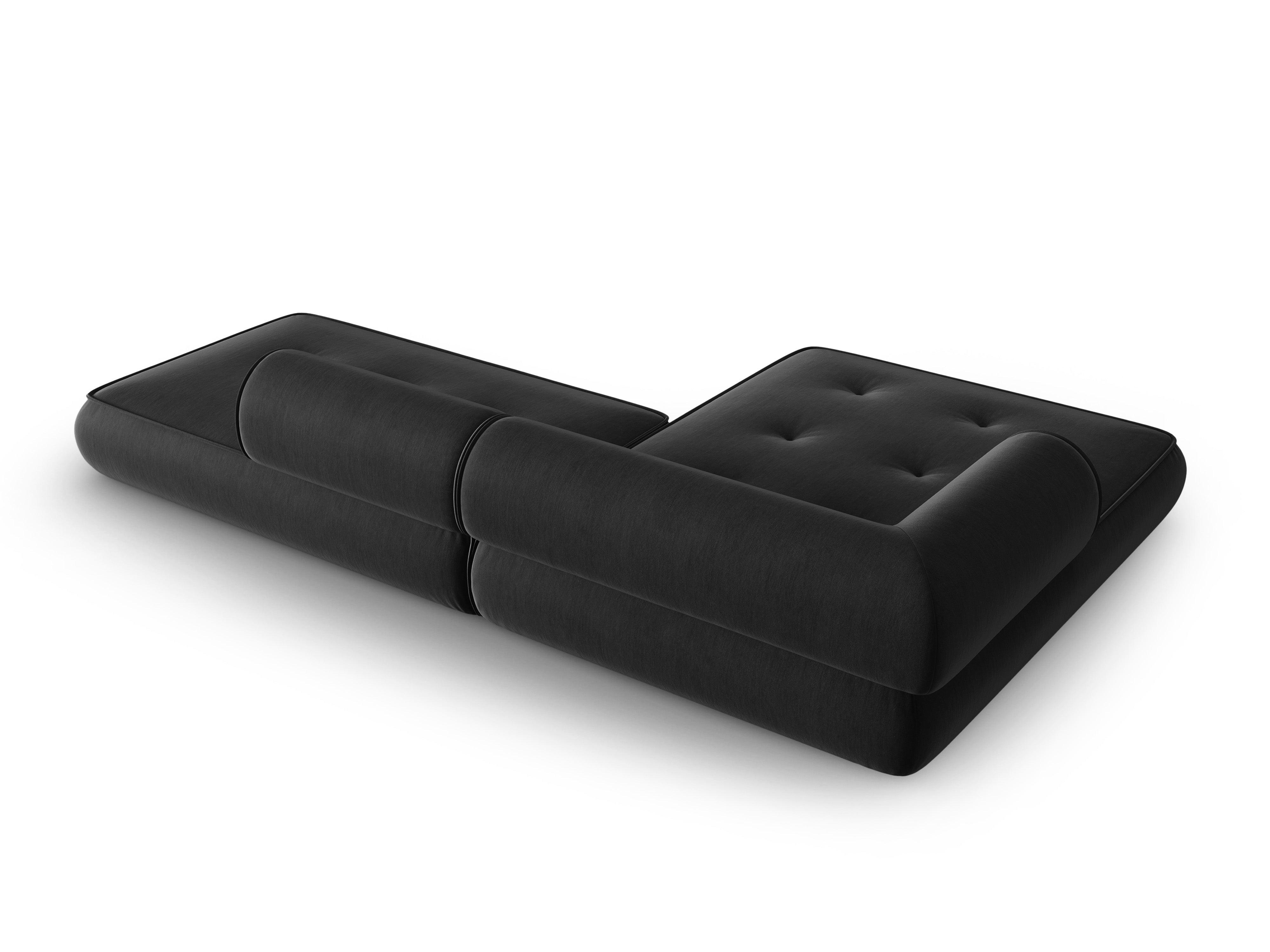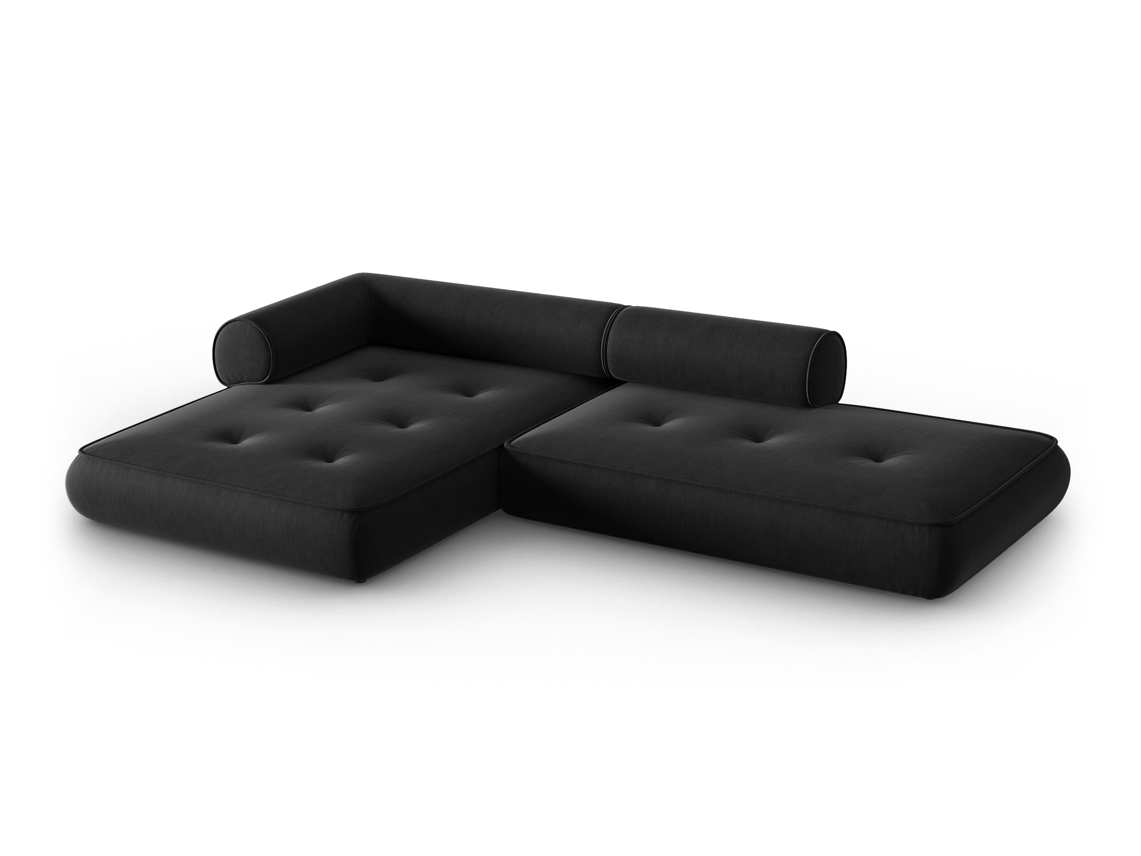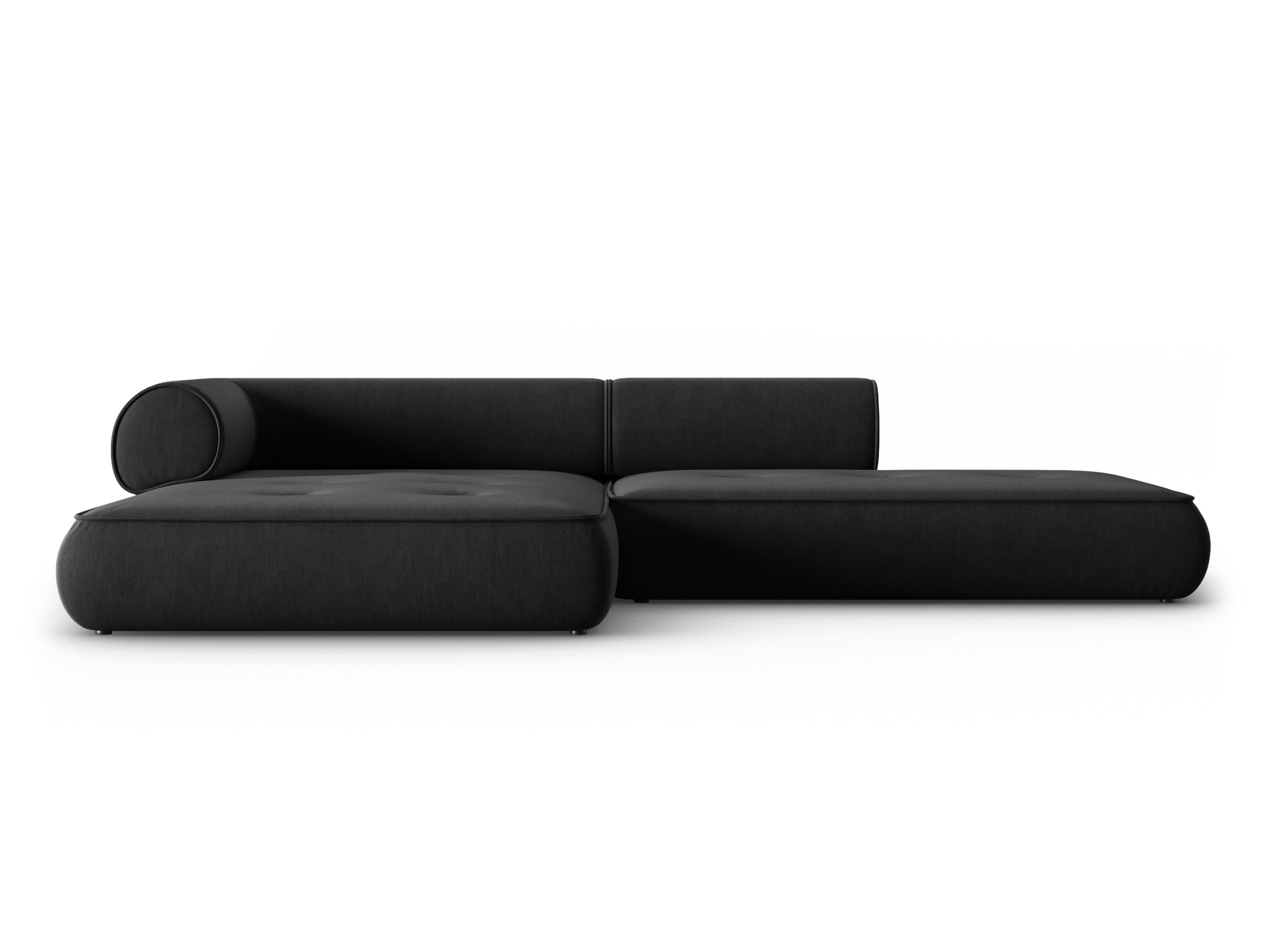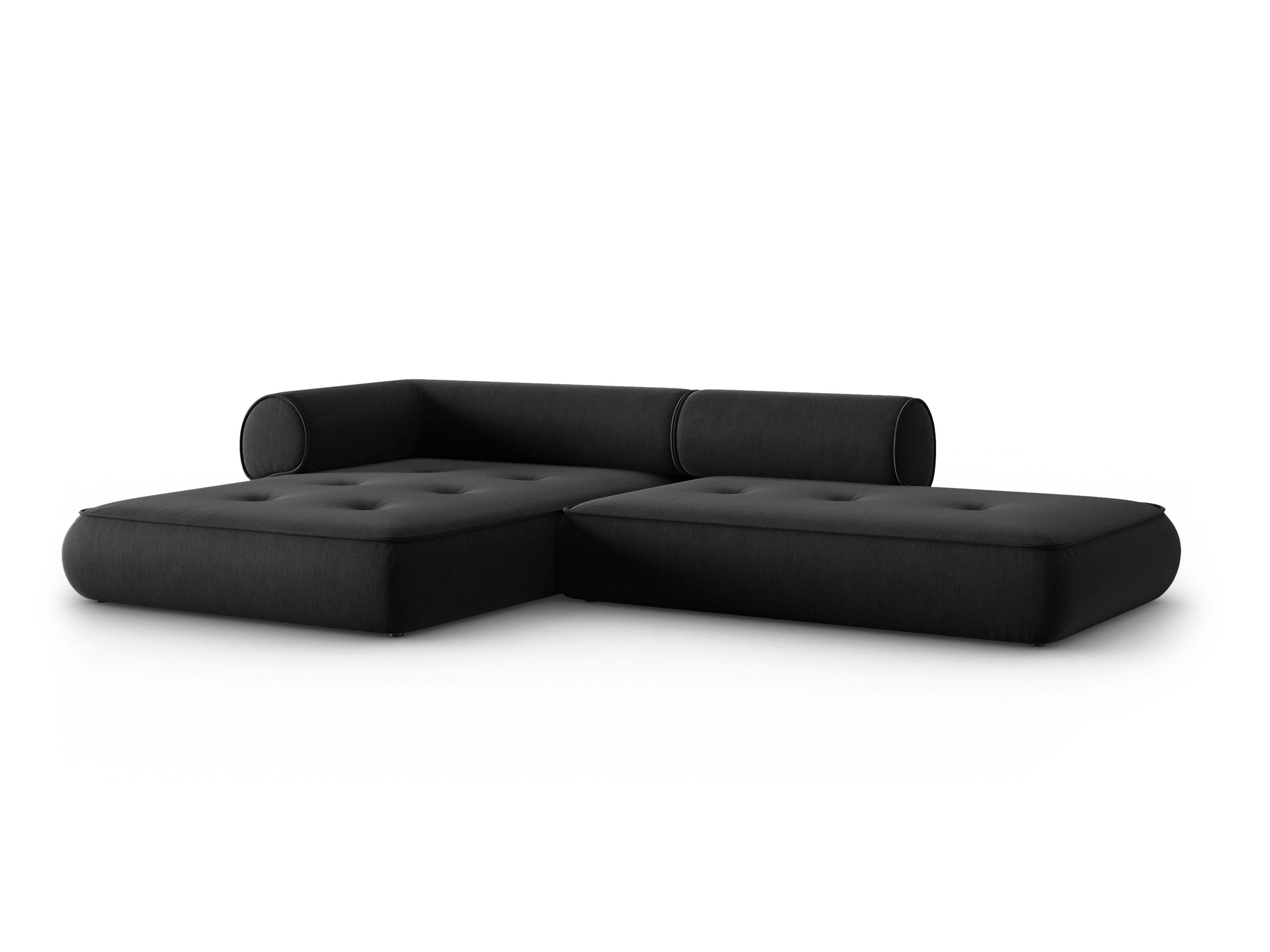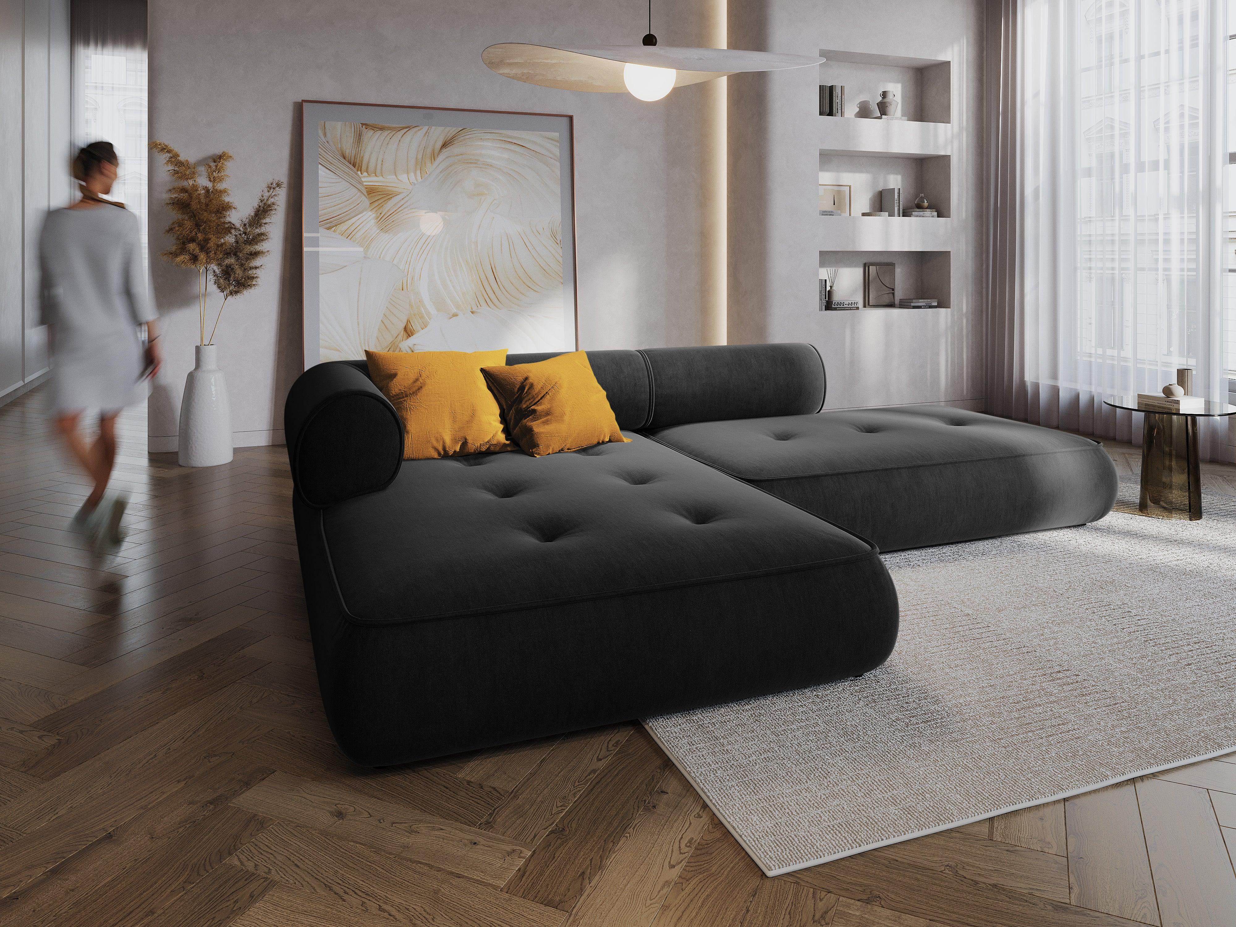 Stilvolle Ecke Lily wird jedem Innenraum zeitlose Eleganz verleihen. Eine einzigartige Form ist das Ergebnis eines modernen Ansatzes für zeitlose Möbelformen. Abgerundete Ränder der Sitze Sie haben eine extrem originelle Form, und die Rückenlehne bieten während der Pause ausreichend Komfort. Die Polsterung aus schwarzem Stoff ist nicht nur praktisch, sondern auch angenehm angenehm.