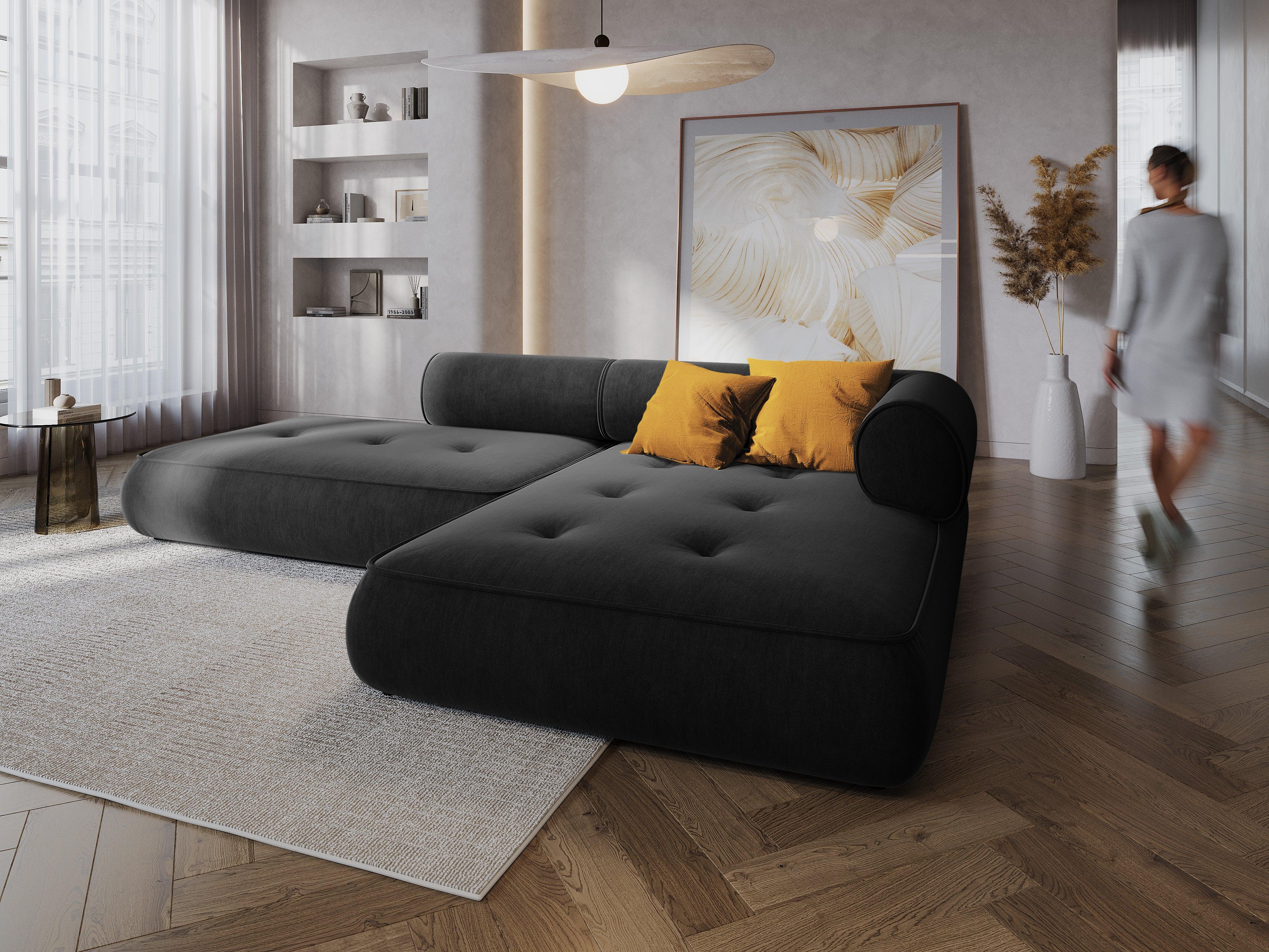 Narożnik w tkaninie szenilowej prawostronny otwarty LILY antracytowy Maison Heritage    Eye on Design