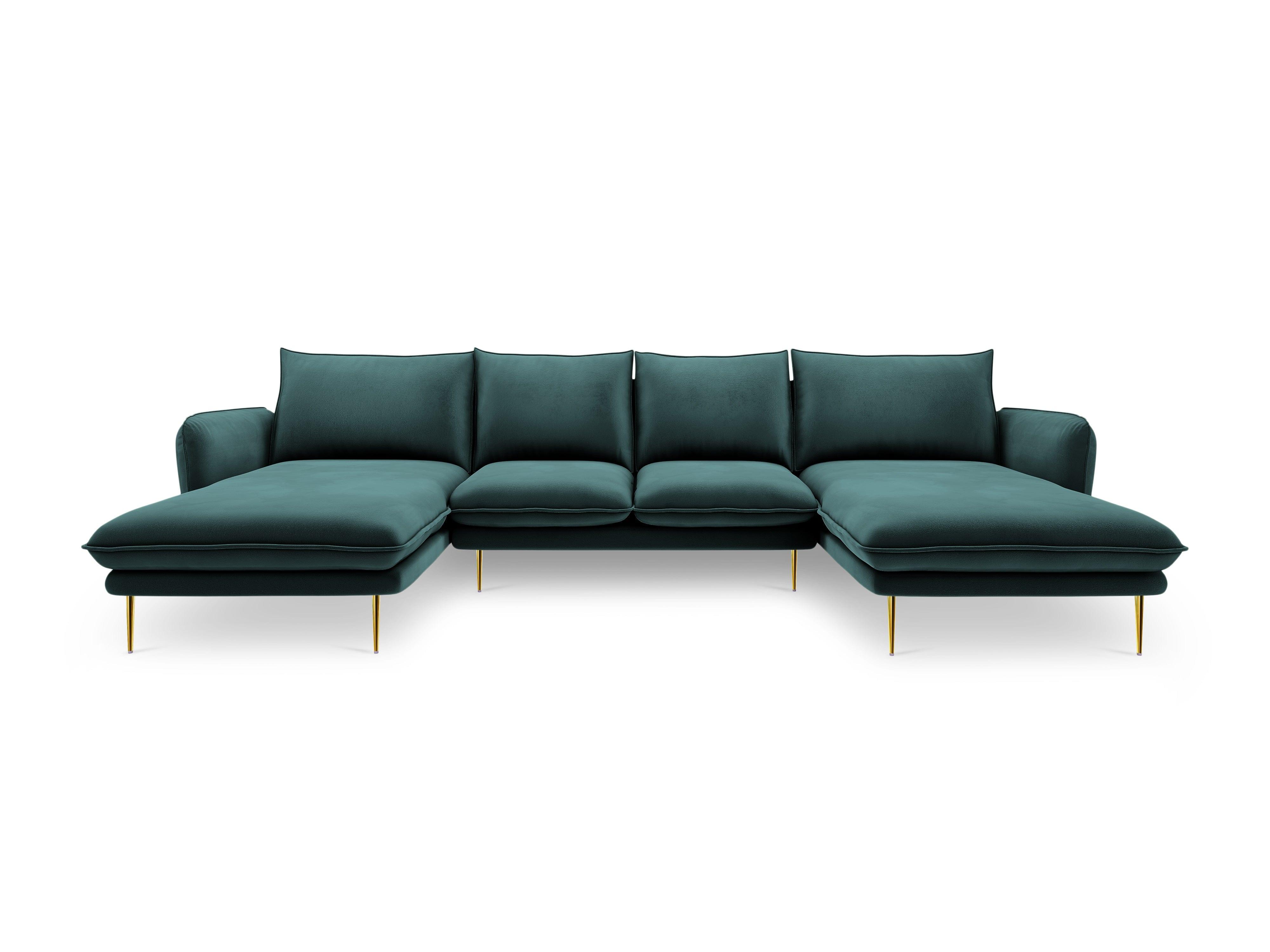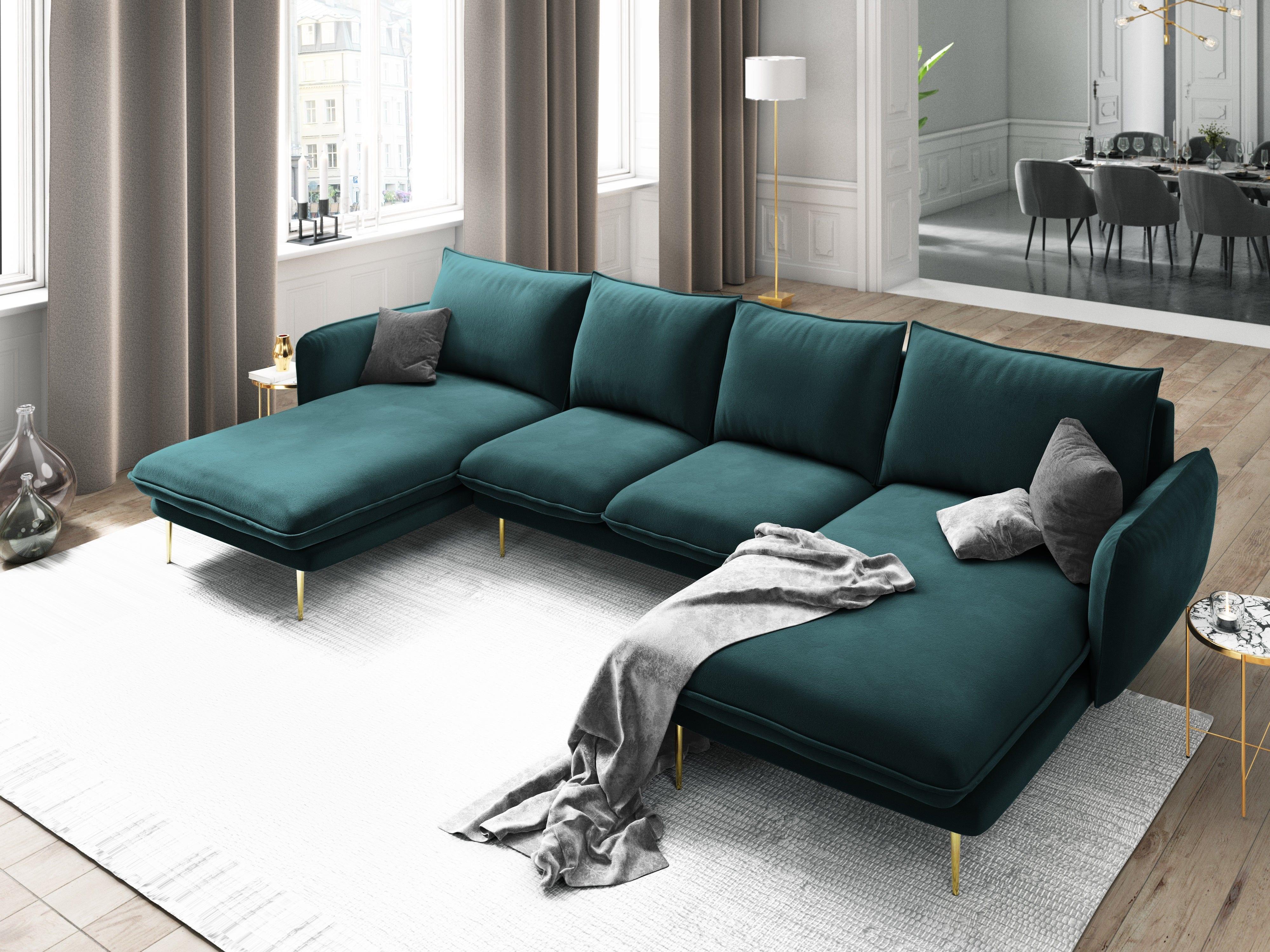 Narożnik w kształcie U Vienna wyróżniają piękne proporcje i harmonijne kształty. Narożnik do salonu jest nie tylko wygodny, ale też wprowadzi do wnętrza nutę paryskiego szyku i elegancji. Subtelna forma i miękkie siedzisko zapewnią niezwykły komfort użytkowania. Metalowe nogi nadają całej formie lekkości.