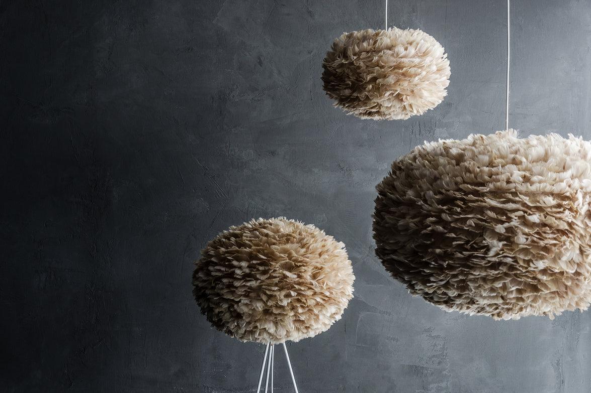 Schatten EOS strahlt mit Stärke und faszinierender Schönheit weicher Federn aus und schafft zu Hause eine angenehme, warme Atmosphäre. Die ungewöhnlichen, Handgefertigte Lampenschirme Sie bestehen aus natürlichen Gänsefedern und bieten ein zartes, gemütliches Licht und verleihen jedem Innenraum einen raffinierten und eleganten Akzent.