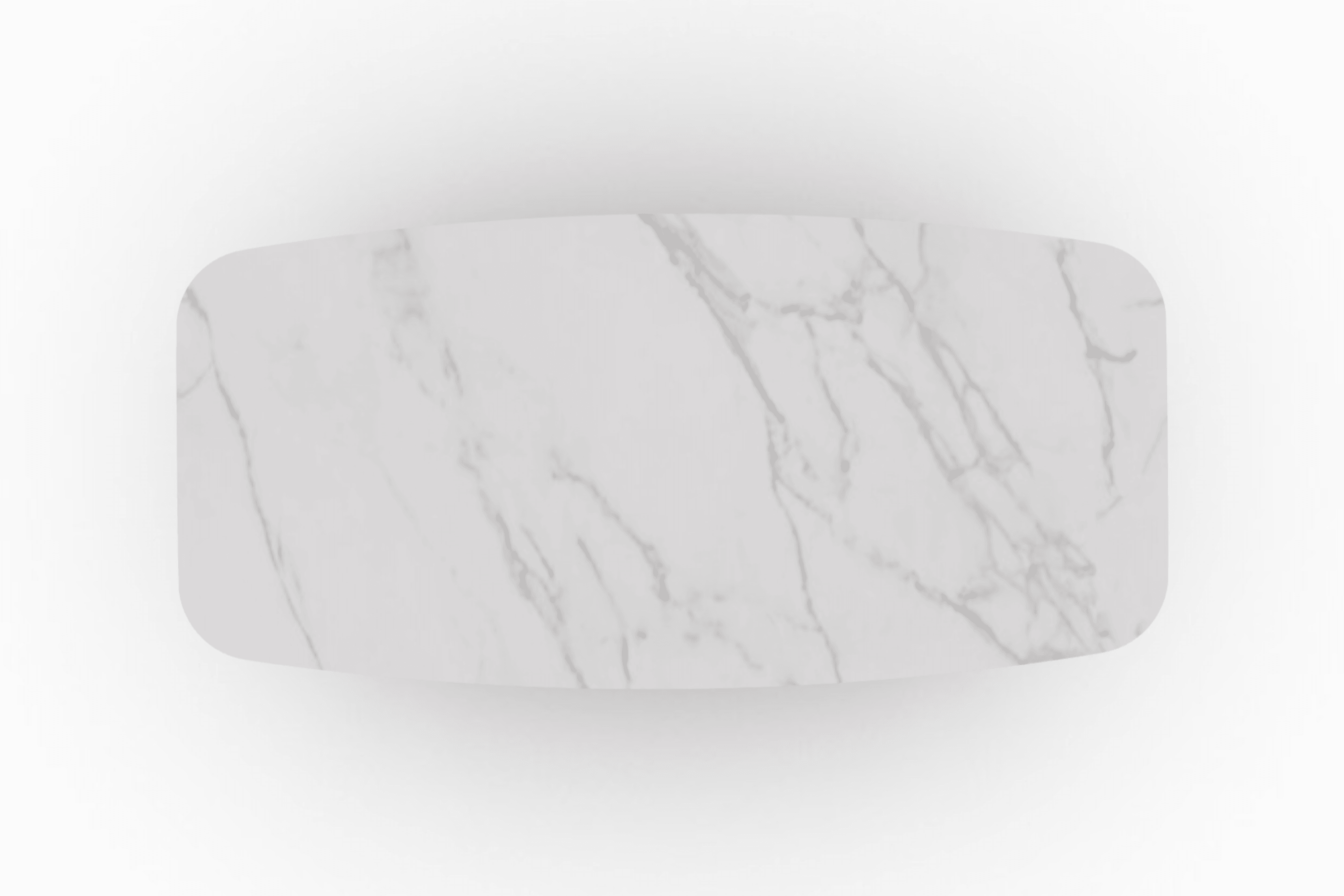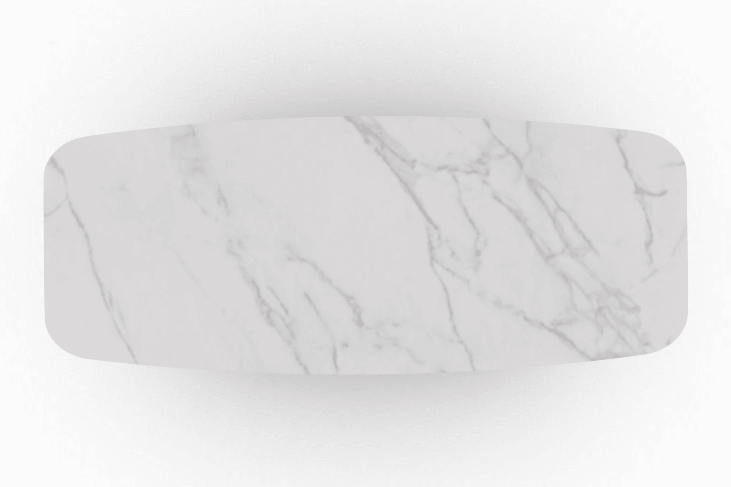 Calligaris -Keramik werden durch Kombinieren einer Porzellansteinscheibe mit geschmittertem Glas erhalten. Das Ergebnis ist eine Oberfläche mit außergewöhnlichem Widerstand gegen Kratzer, Stöcke, Flecken, Temperaturen und Chemikalien. Es ist leicht zu reinigen und vollständig hygienisch: Es absorbiert keine Flüssigkeiten und setzt keine schädlichen Substanzen frei.