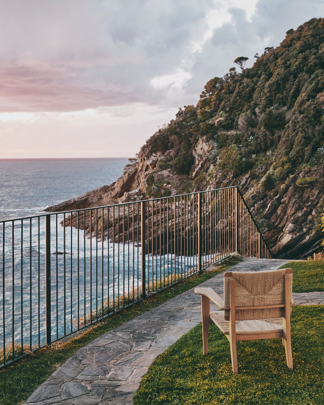 Sitzfläche und Rückenlehne sind handgeflochten aus wasserdichter und UV-beständiger Polyethylenfaser, die natürliches Hyazinthengeflecht perfekt imitiert. Das charakteristische Flechtmuster verleiht dem Stuhl ein edles Aussehen, und die ergonomische Form bietet außergewöhnlichen Ruhekomfort. Der F-Chair Outdoor eignet sich perfekt für Terrassen und Gärten sowie für Entspannungsbereiche am Pool und verbindet Langlebigkeit mit zeitlosem Design.