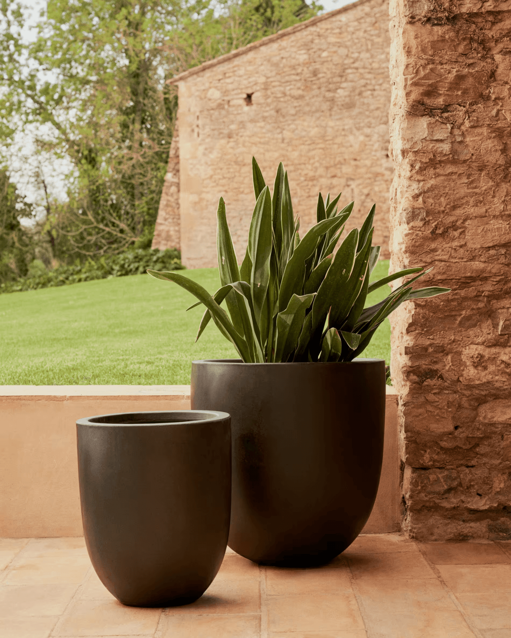 Gartentopf mit schlankem Aigablava schwarzer Zement