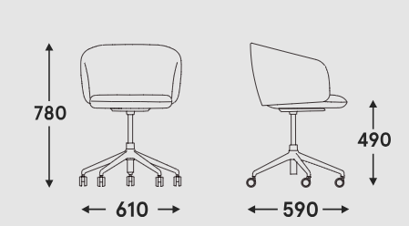 Dank des Rotary, der verstellbaren Basis und des weichen Sitzkissens ist der Grace -Stuhl eine gute Wahl für Büros, Hotels, Restaurants und stilvolle Heimräume.