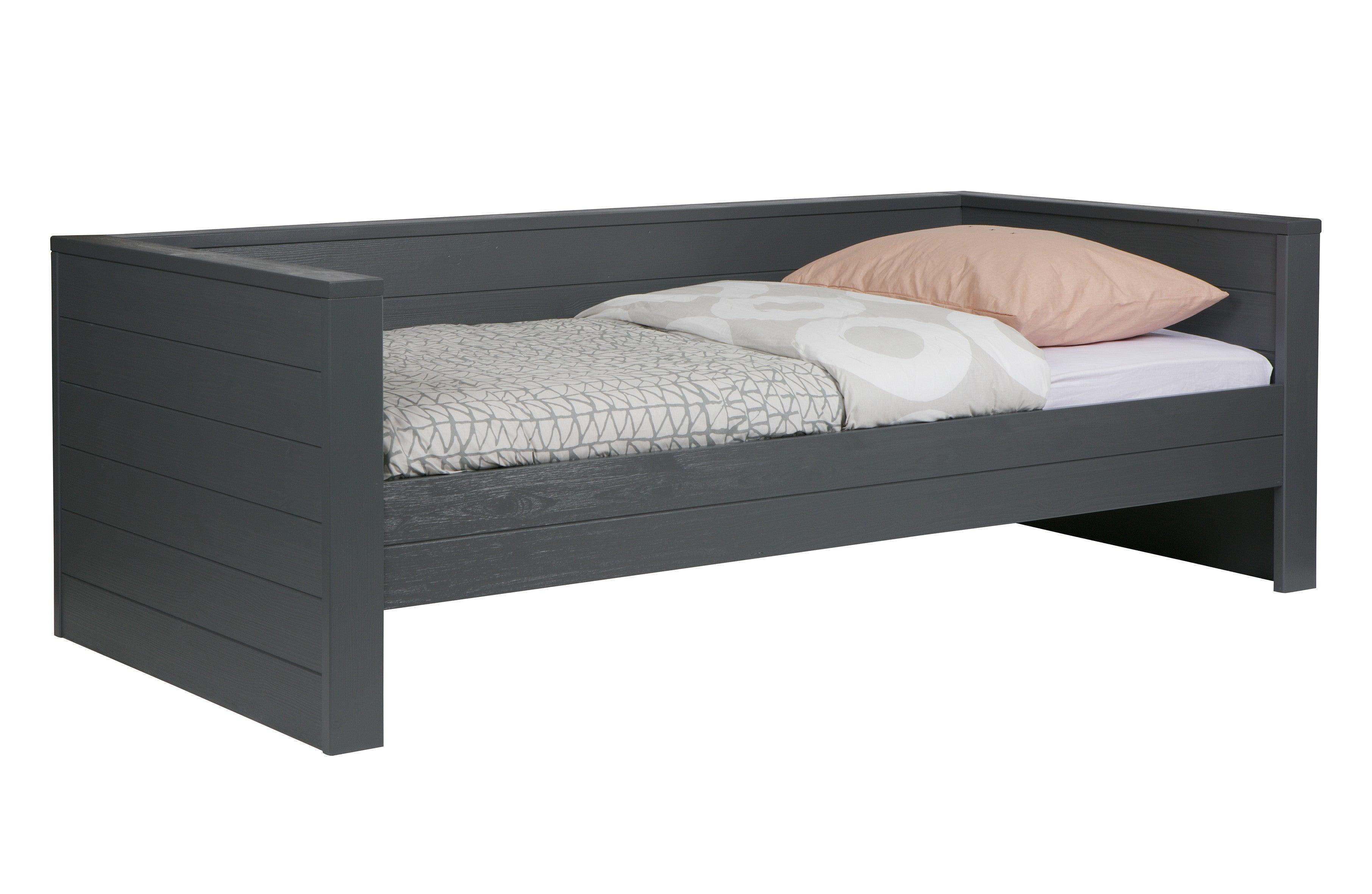 Łóżko DENNIS grafitowy Woood z oparciem z listwami  Eye on Design