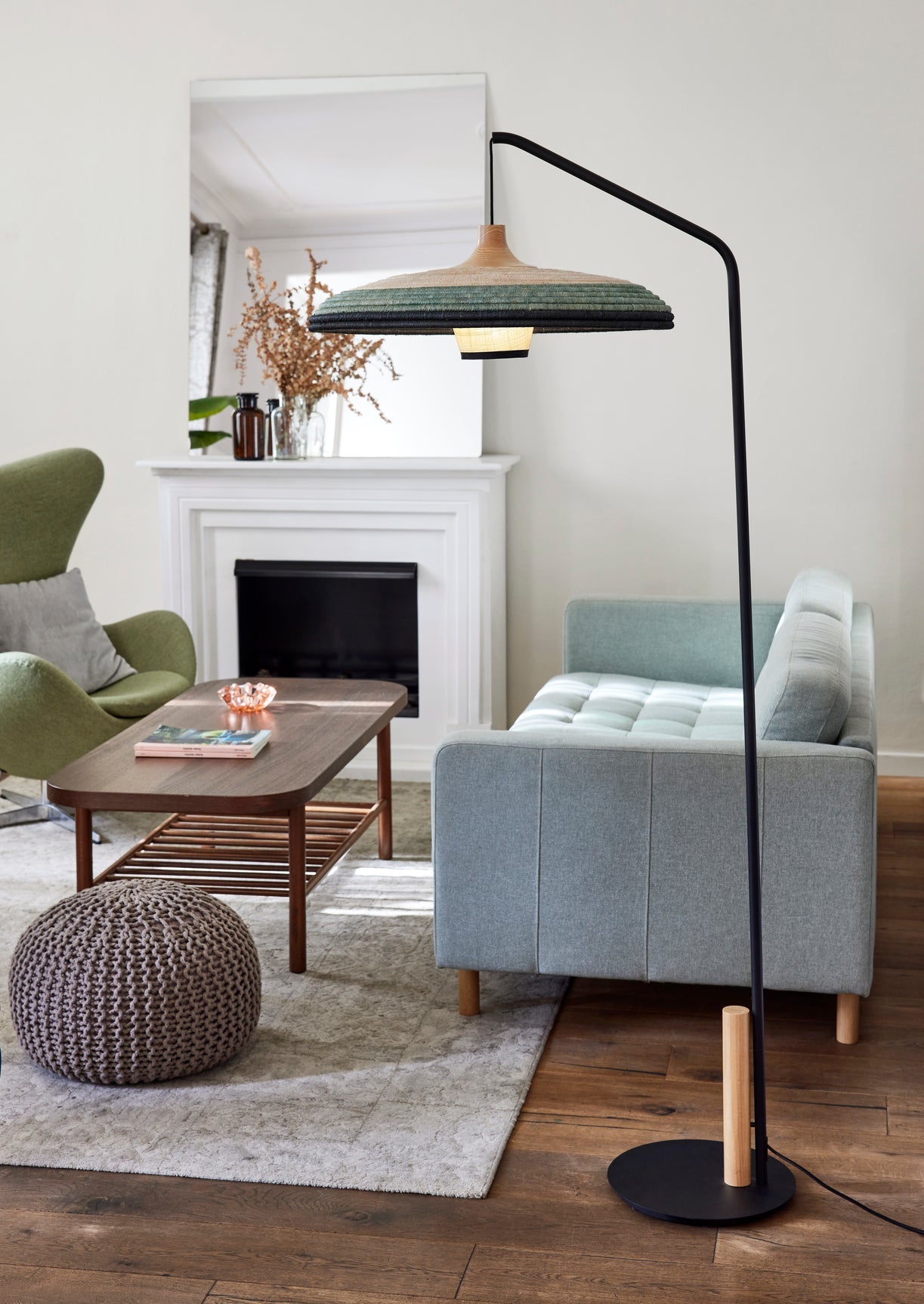 Der schwarze Metallrahmen der Grasstehlampe wurde mit einem dekorativen Holzdetail angereichert und fügte es warm und elegant hinzu. Diese Kombination aus dauerhaften, natürlichen Materialien und Handwerkspräzision macht Lampe Eine ideale Wahl für Innenräume, die von Natur und organischen Formen inspiriert sind. Das für den französischen Hersteller Forestier erstellte Projekt führt gemäß der Philosophie von Jette Scheib, die sich in seinen Werken auf Brunnen und Harmonie konzentriert, Gemütlichkeit und Persönlichkeit in den Raum ein.