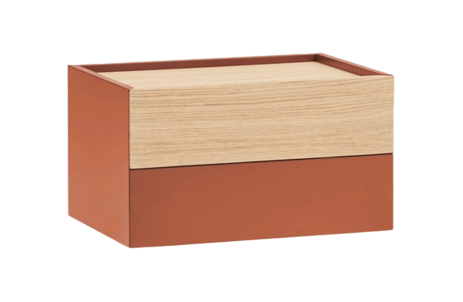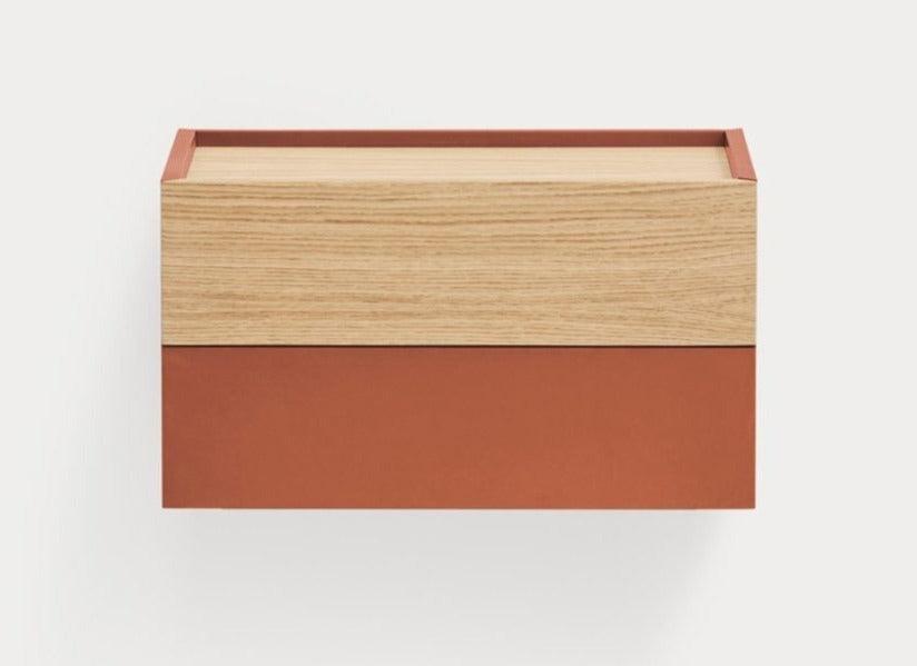 Hängenden Nachttisch Otto in der Zimtfarbe zeichnet sich durch einen modernen Stil mit klaren Linien aus, in denen sich die Farbe harmonisch mit den Akzenten des natürlichen Furniers verbindet, was es ermöglicht, sie an verschiedene Räume anzupassen. Sie können es an die Wand hängen, was es beeindruckt macht, dass es ein ungewöhnlicher visueller Effekt ergibt.