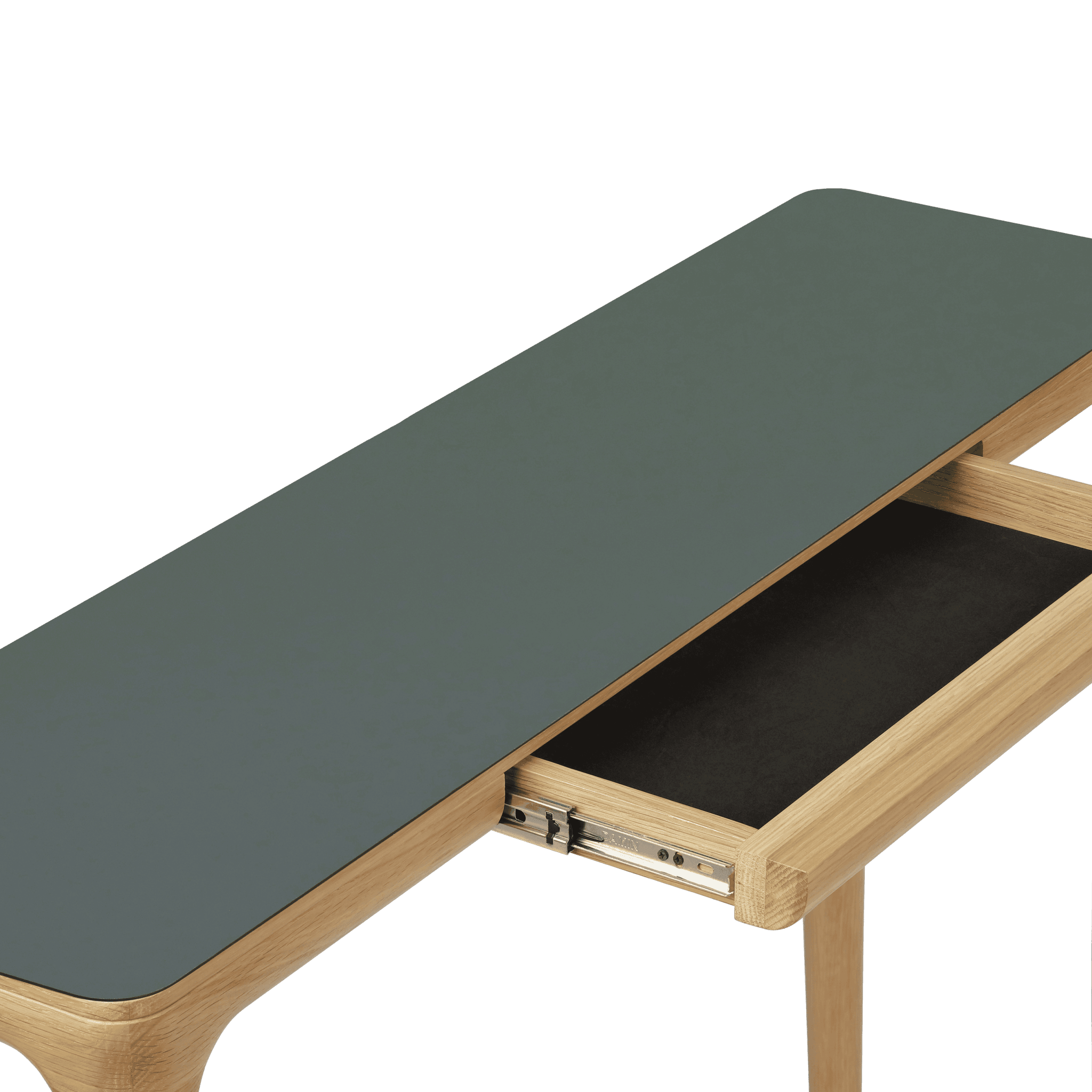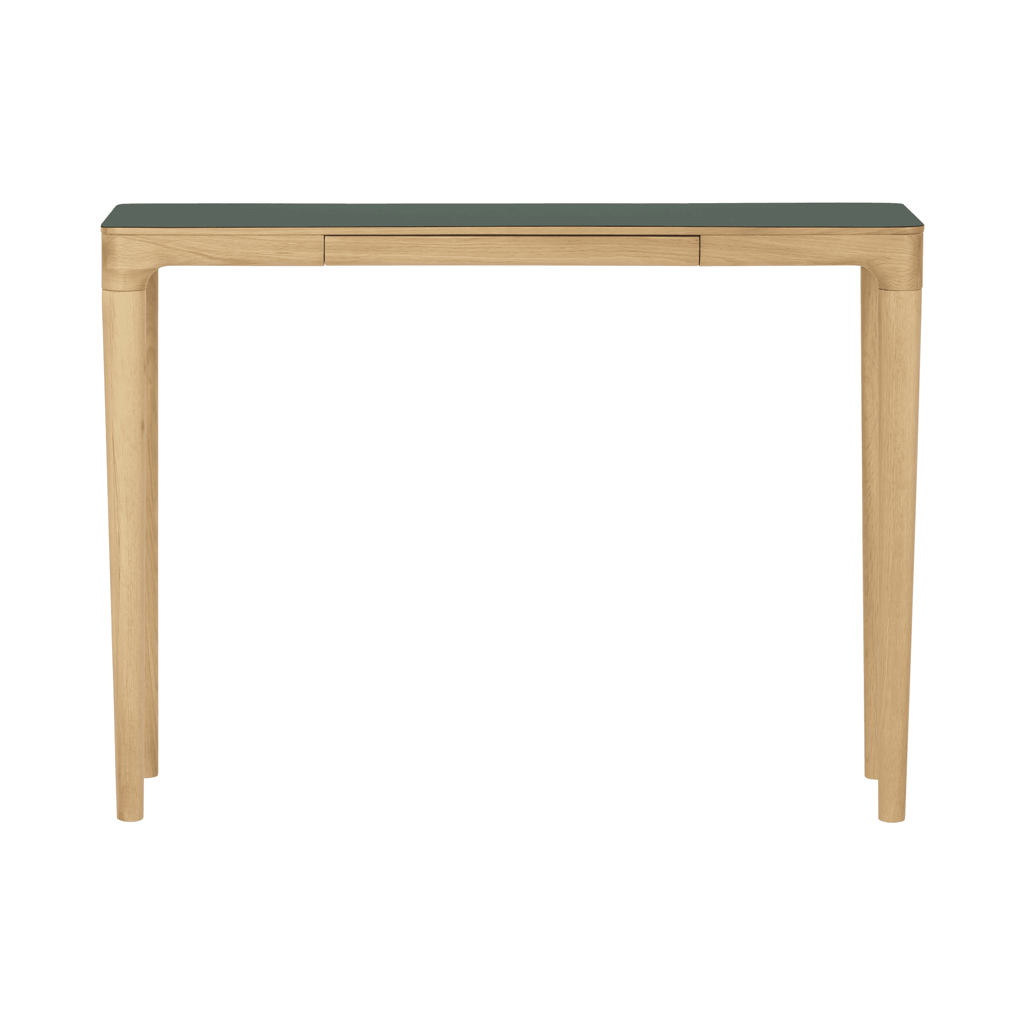 Konsole Erhältlich in drei Farben: natürliche Eiche, dunkle Eiche und schwarze Eiche. Die Oak -Version ist auch mit dem Fenix® -Nanolaminat in Wolkengrau, Moosgrün und Obsidian Black erhältlich und betont die natürliche Schönheit von Holz.
