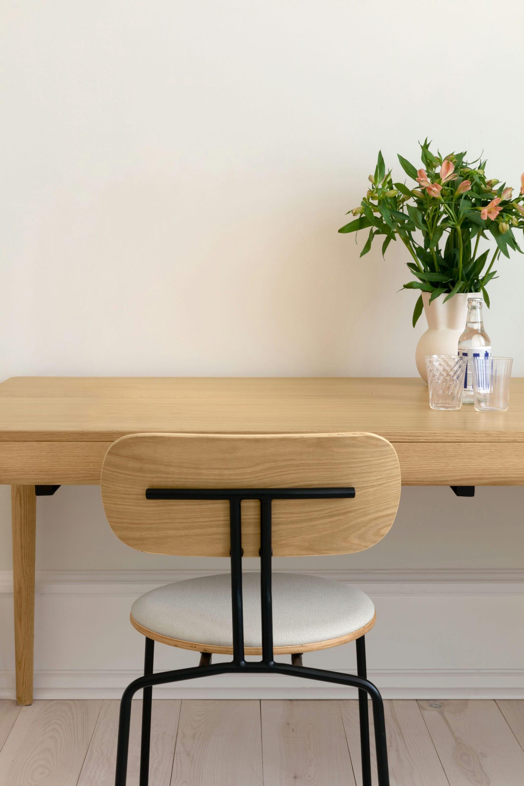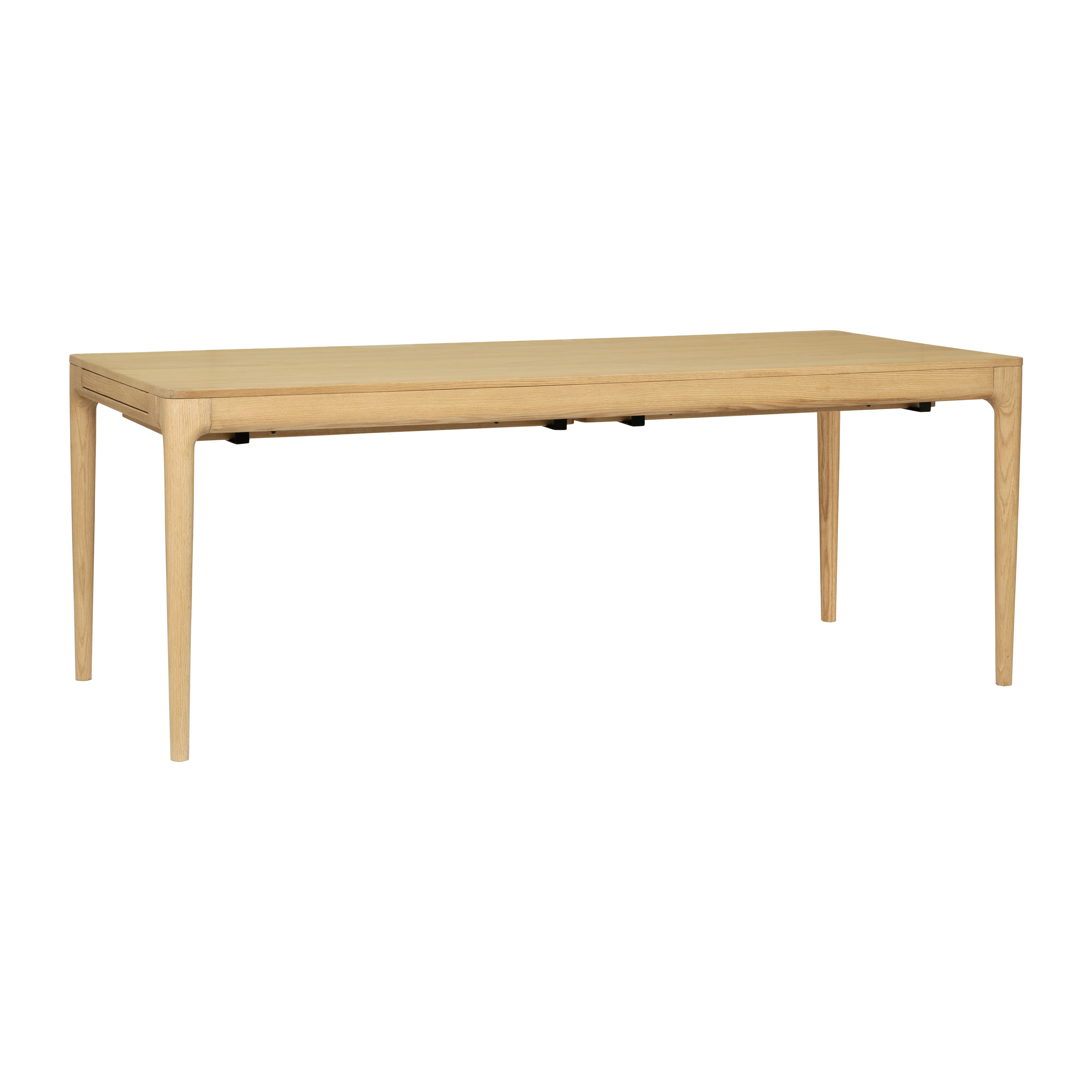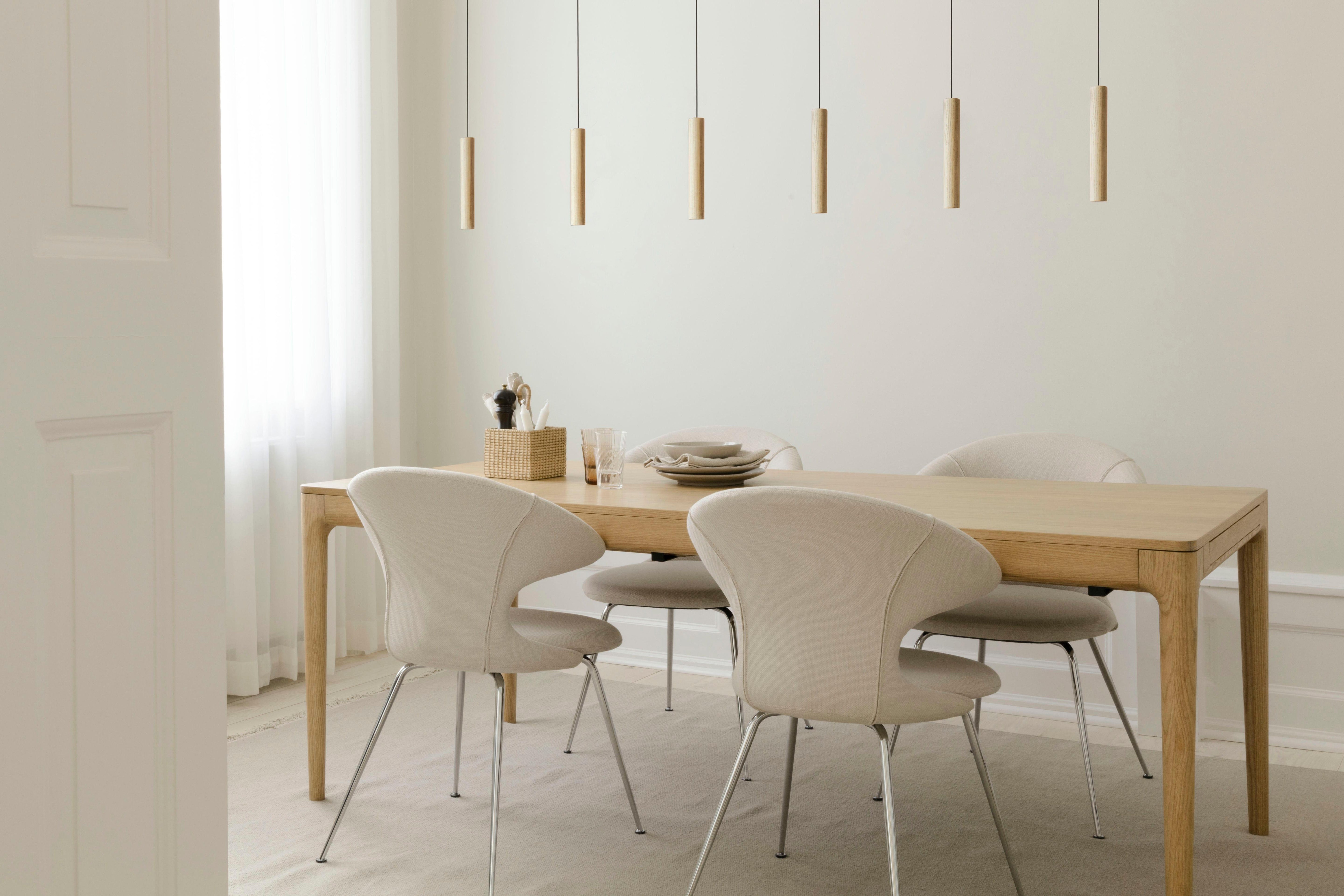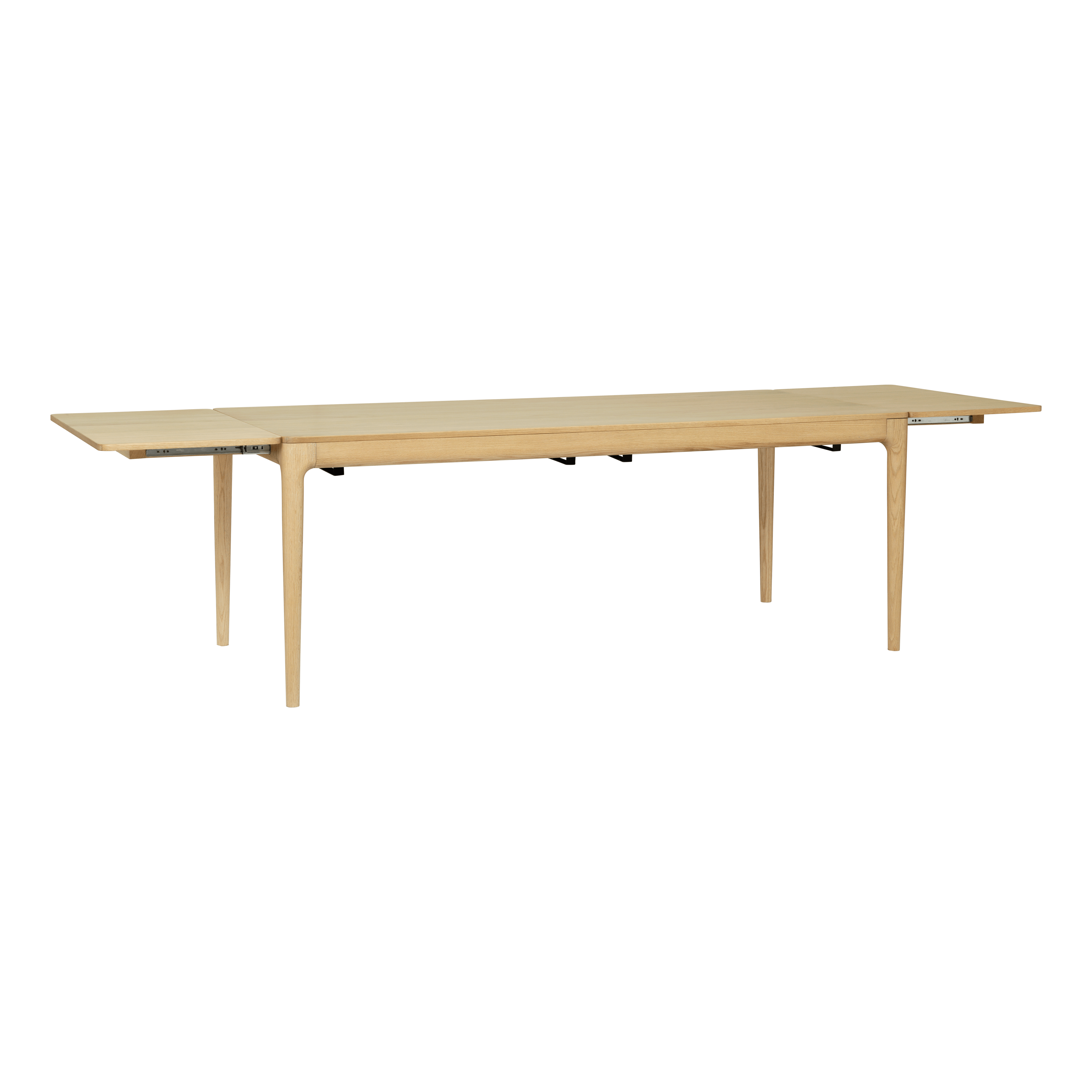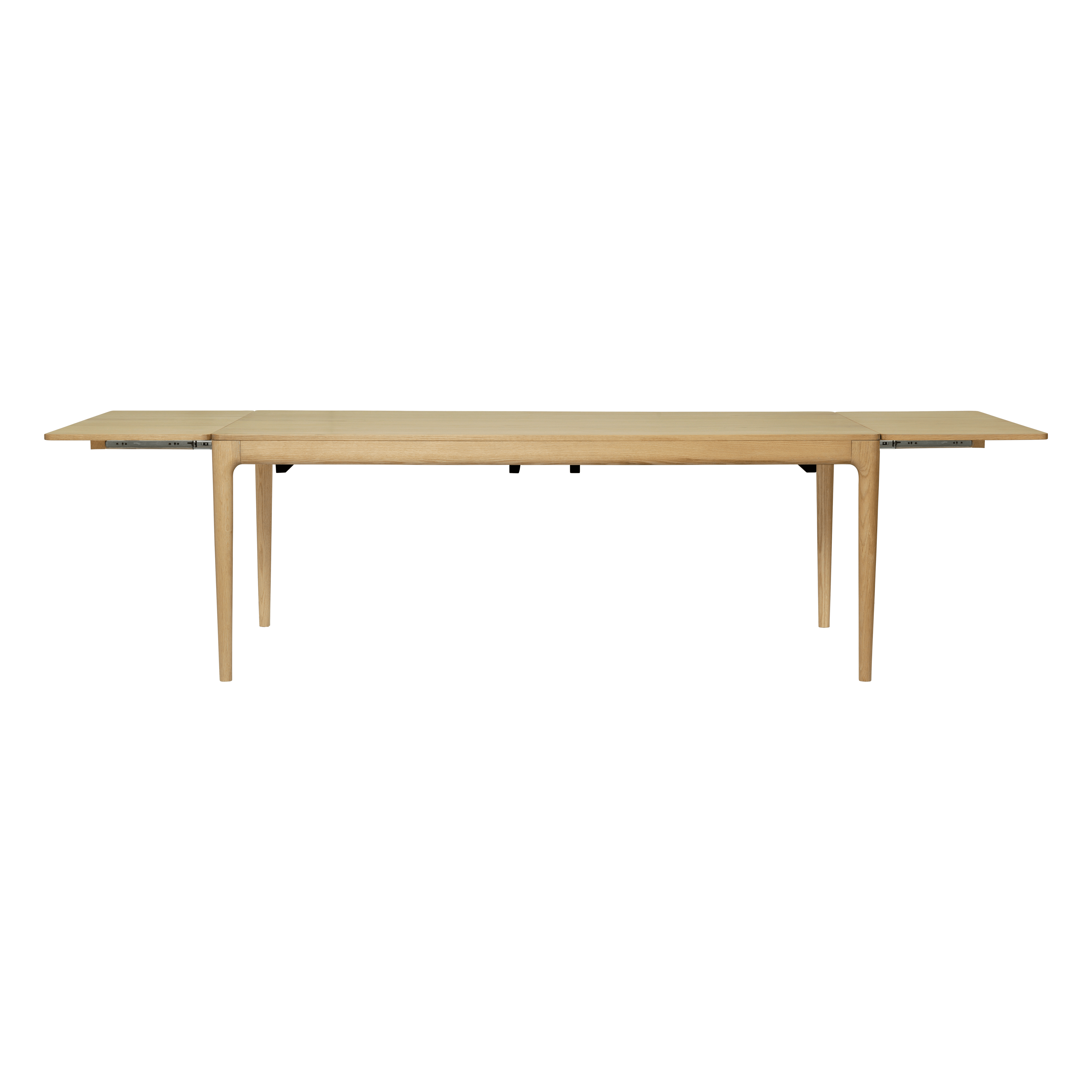 Tisch Es kann bequem bis zu 12 Personen aufnehmen, die in drei Farben erhältlich sind: Naturhilfe, dunkle Eiche und schwarze Eiche. Die Oak -Version ist auch mit Fenix® -Nanolaminat in Wolkengrau, Moosgrün und Obsidian Schwarz erhältlich und betont die natürliche Schönheit von Holz.
