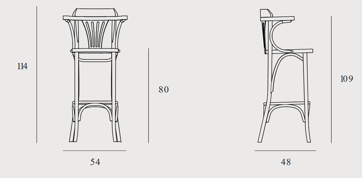 Der Barhocker H-5172 ist ein eleganter Barstuhl im Retro-Stil und Teil der 51-Kollektion – einer Möbellinie, die vom klassischen Design der Wende des 19. und 20. Jahrhunderts inspiriert ist. Dieses Modell wird mit traditioneller Dampftechnik aus gebogenem Buchenholz hergestellt. Es erinnert an die goldenen Zeiten der Marke Thonet-Mundus und unterstreicht die handwerkliche Herstellung.