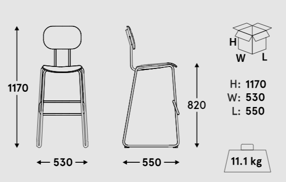 Gepolsterter Hoker Die neue Schule, die von Studio form Us with Love entworfen wurde, ist eine moderne Interpretation eines traditionellen Schulstuhls. Es passt perfekt zum Büro -Baldachin, Bars, Cafés und Heimküchen mit einem hohen Top. Hoker Es passt sich an Küchen- und Bar -Arbeitsplatten an. Der gepolsterte Sitz und der Rücken lindern den industriellen Charakter eines Metallrahmens und bieten Komfort und modernes Design.