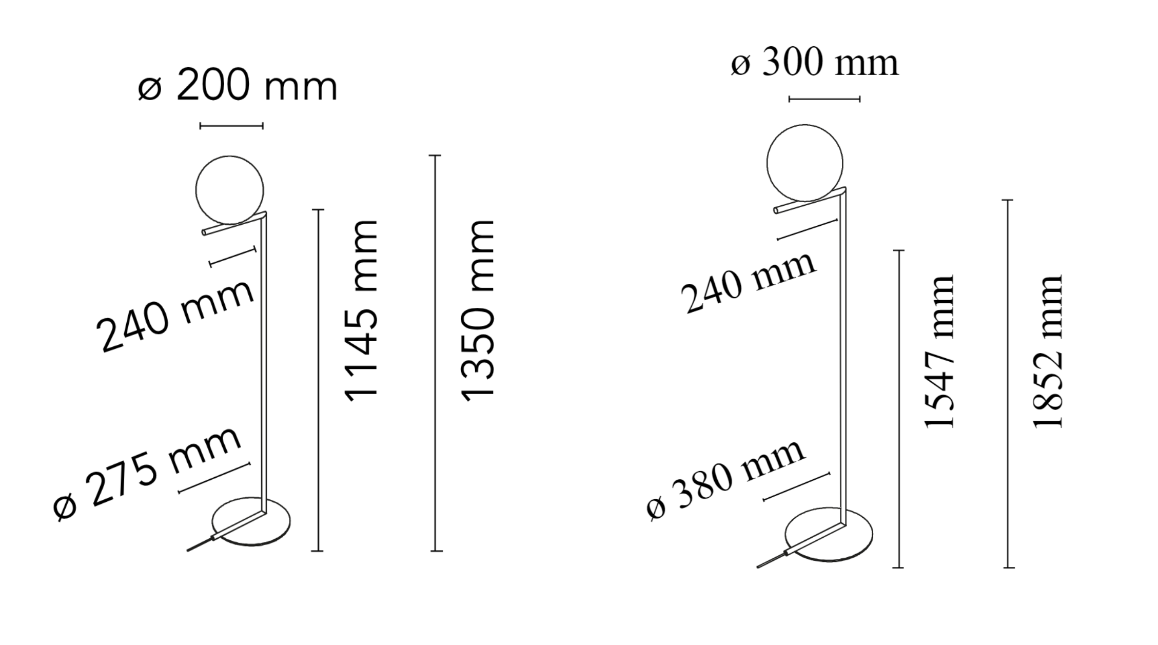 IC Lights ist harmonisch Lampe Boden Mit einem großen weißen Glaslampenschirm, der wunderschön mit einem Chrommetallrahmen kontrastiert. Ihre zeitgenössische und minimalistische Form ist großartig im Schlafzimmer, im Esszimmer oder im Büro. Die Lampe gibt ein weiches, gemütliches Licht aus.