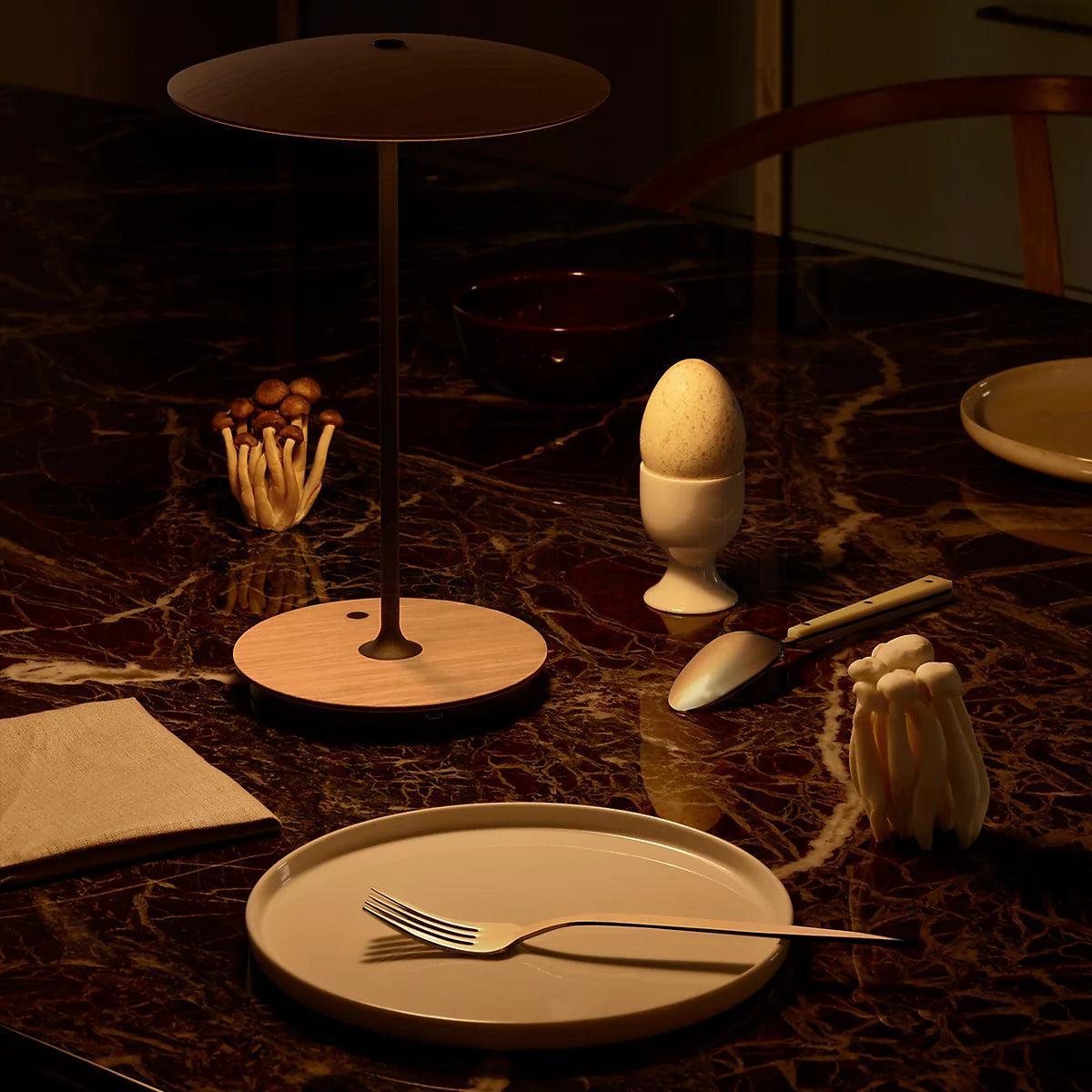 Dank der Lithium-Ionen-Batterie ermöglicht die neue tragbare Tischversion von Ginger eine unabhängige Beleuchtung des Raums mit vollständiger Freiheit und ohne Kabel.