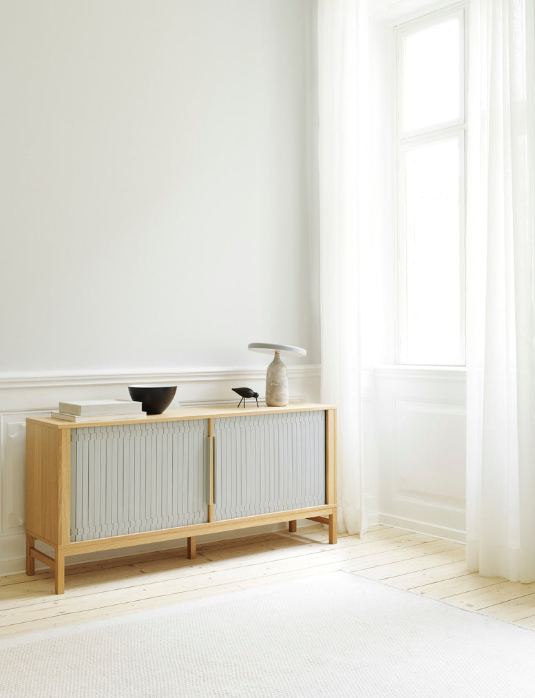Die geometrische Form und die grafische Wiederholung von Jalousien verleihen der Kommoden einen jugendlichen und gleichzeitig eleganten Look. Vielen Dank an die Gleitfronten Kommode Es sieht nicht nur stilvoll, sondern auch praktisch aus, sondern ermöglicht es Ihnen, Artikel, von Office -Dokumenten bis hin zu Tabellen- oder Büchern, bequem zu speichern. Mit einstellbare Regale im Inneren können Sie den Raum an individuelle Bedürfnisse anpassen und die Truhe der Schubladen zu einem vielseitigen und funktionalen Element eines jeden Innenraums machen
