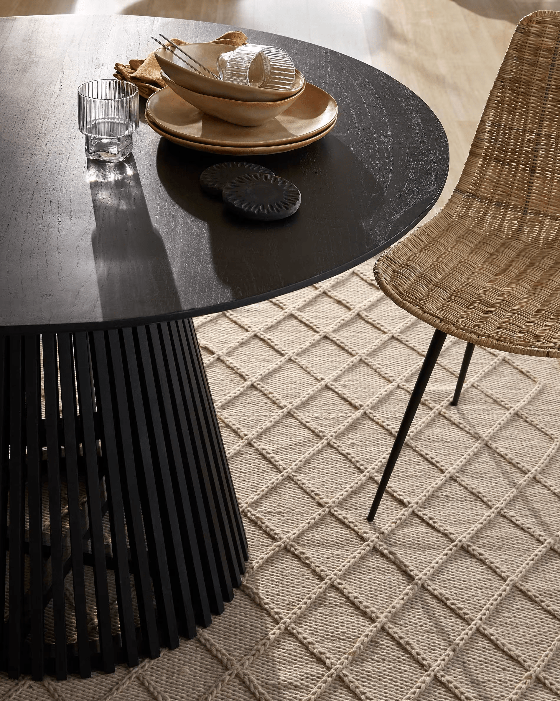 Krzesło NINA czarne drewno akacjowe z beżową liną La Forma    Eye on Design