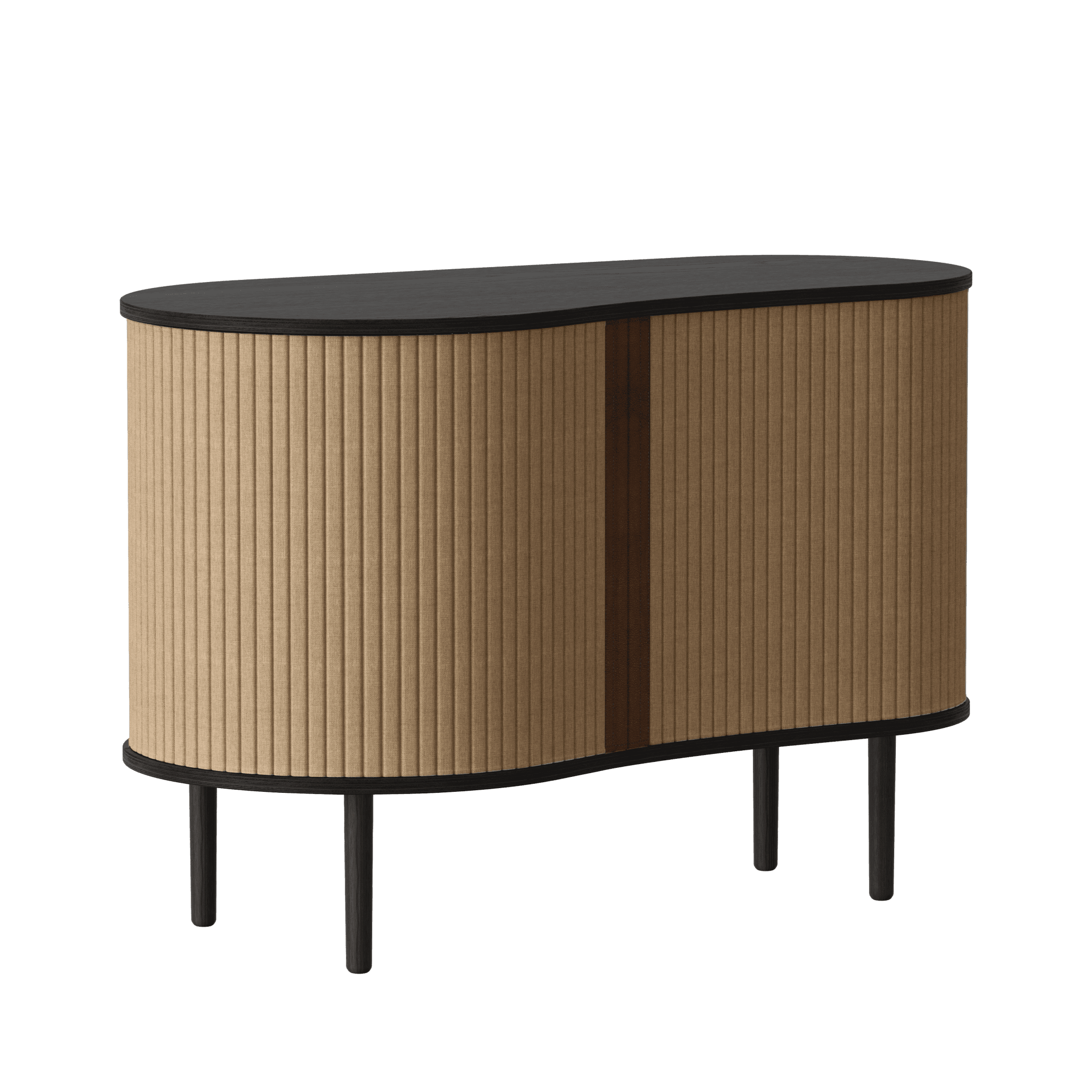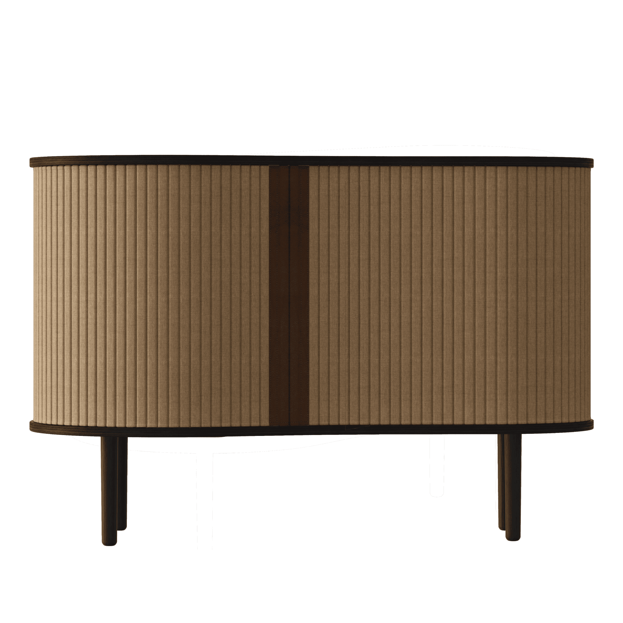 Kommode Es ist in drei ausdrucksstarken Farben erhältlich: Eiche, Dunkle Eiche und schwarze Eiche, mit Jalousien, die in sorgfältig ausgewählten Horizonts -Stofftönen erhältlich sind, die ausschließlich aus Recycling stammen. Wichtig ist, dass die Jalousien austauschbar sind, was bedeutet, dass Sie sie leicht selbst ändern können, wodurch die Möbel ein neues Aussehen verleihen und das Design erfrischen können, ohne völlig neue Möbel kaufen zu müssen. Dank dessen sparen Sie nicht nur globale Ressourcen, sondern erweitern auch die Lebensdauer der Möbel.