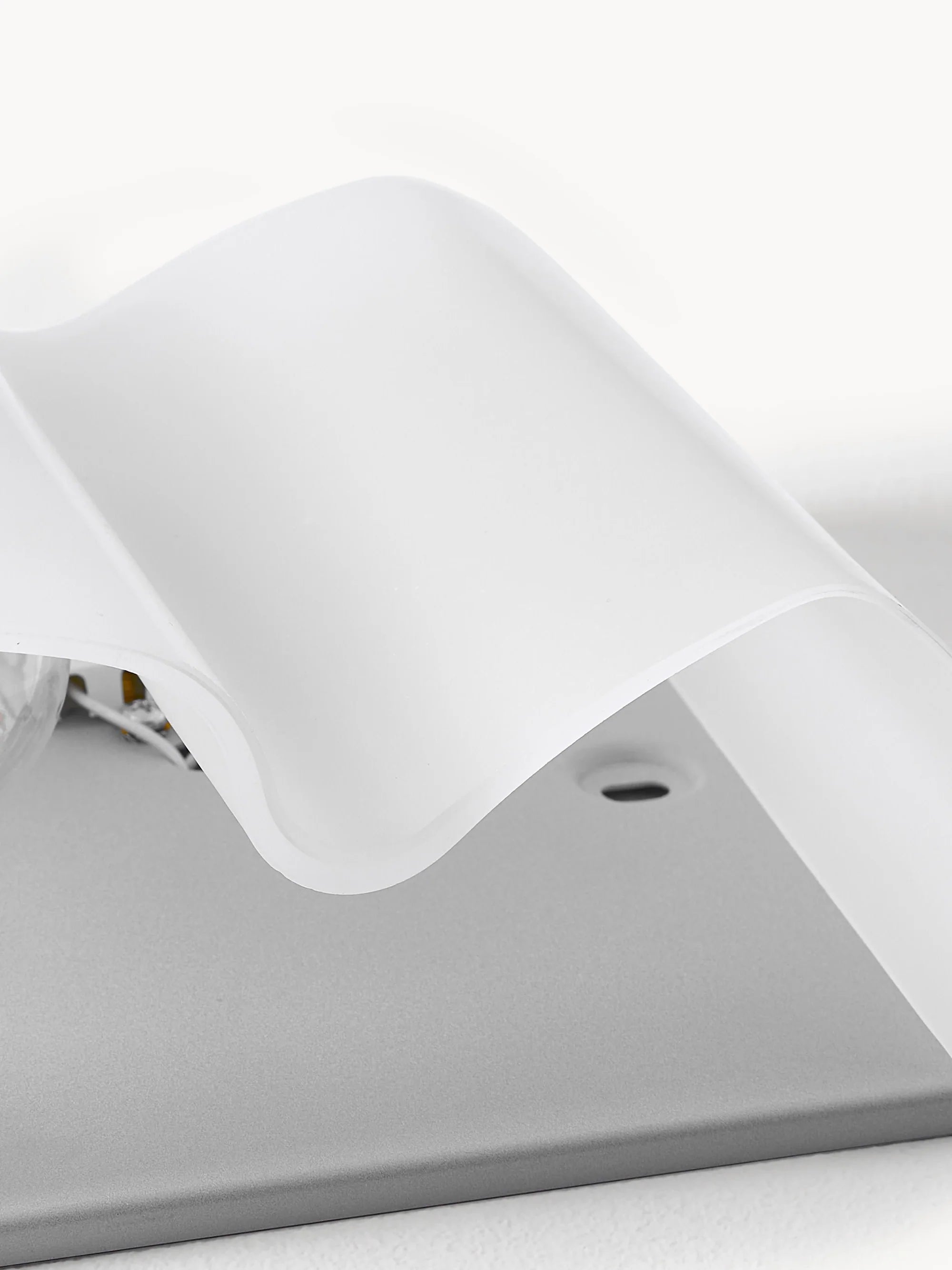 Kinkiet Logico ist eine elegante Beleuchtungslösung, die mit einem handgefertigten, mundgeblasenen Schirm aus Glas mit seidig glänzender Oberfläche begeistert. Dank ihrer einzigartigen, organischen Form erzeugt die Lampe ein subtilen Spiel von Schatten und verleiht dem Raum sowohl im eingeschalteten als auch im ausgeschalteten Zustand eine dekorative Ausstrahlung. Die modulare Konstruktion ermöglicht es, mehrere Leuchten zu kombinieren, was die Schaffung verschiedener Lichtkompositionen erlaubt. Das halbtransparente Glas des Diffusors sorgt für ein angenehmes, sanftes Licht und schafft eine gemütliche Atmosphäre.
