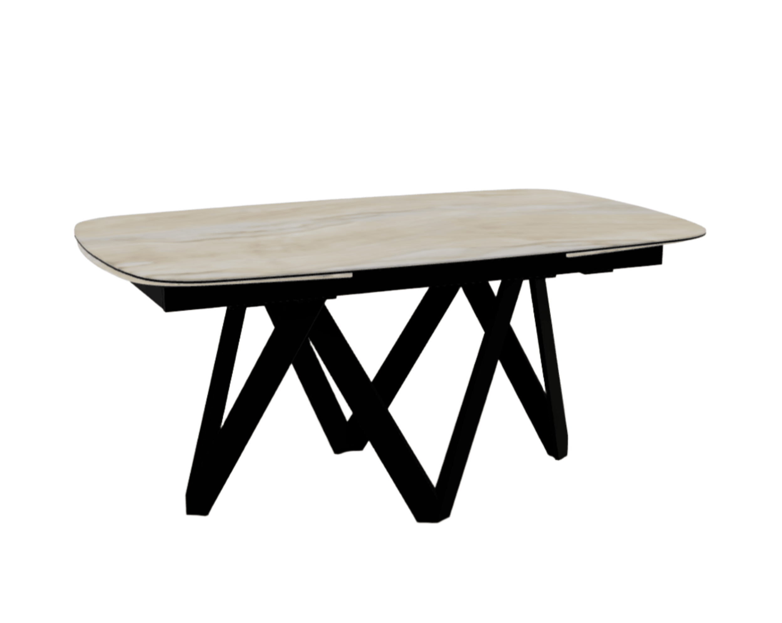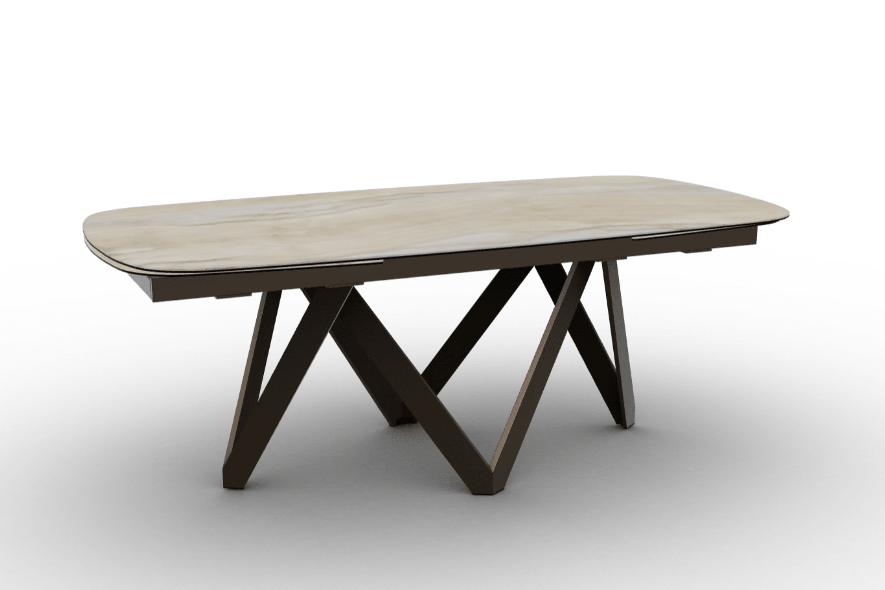 Falten -Out Tisch Cartesio präsentiert dank des Kult -Designs zeitlose Eleganz und bietet eine Reihe von Optionen für Keramikoberteile, die auf einem einzigartigen, beschichteten Metall- oder Holzrahmen getragen werden. Dieser Rahmen besteht aus vier unabhängigen rechteckigen "V" -Fischelementen.