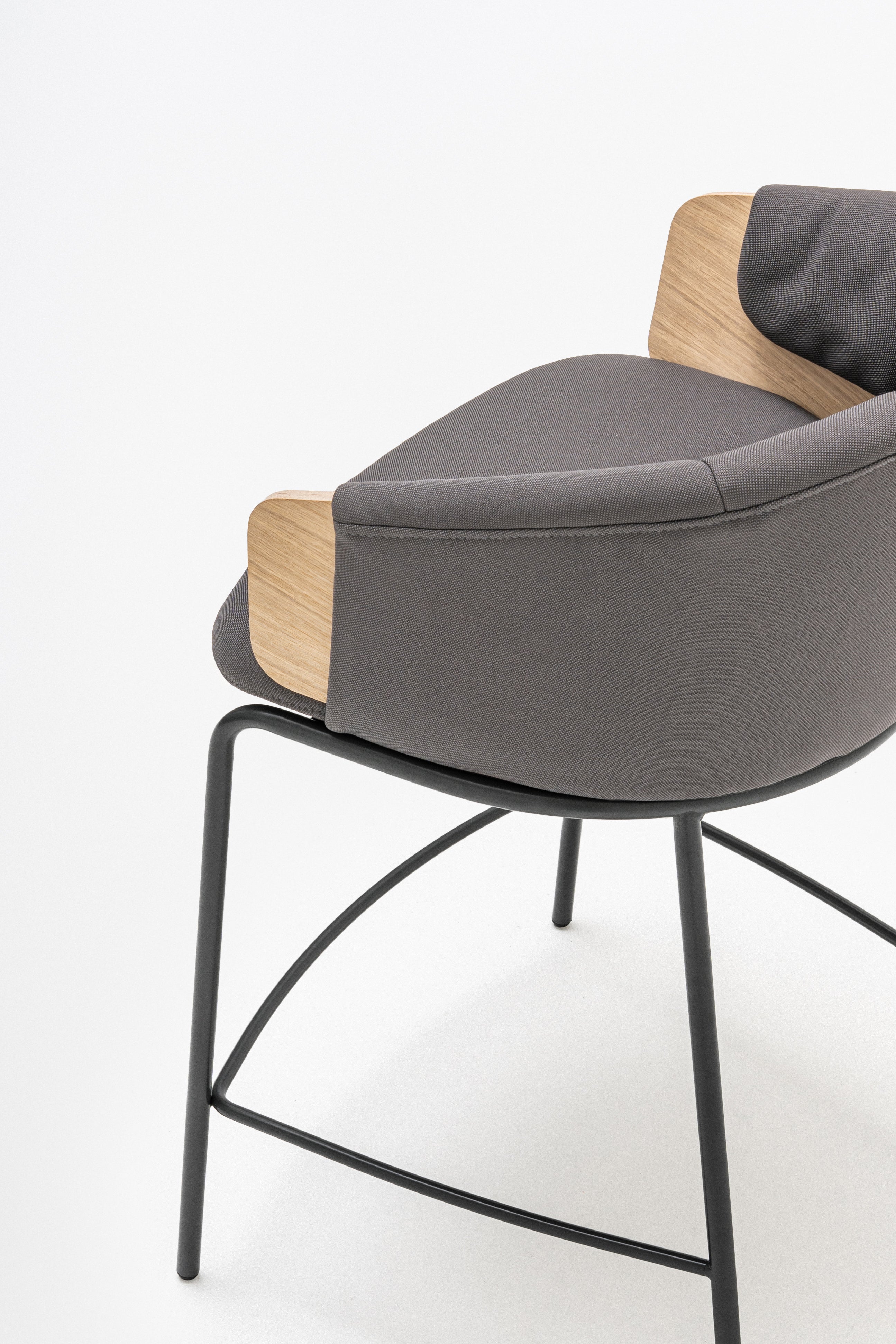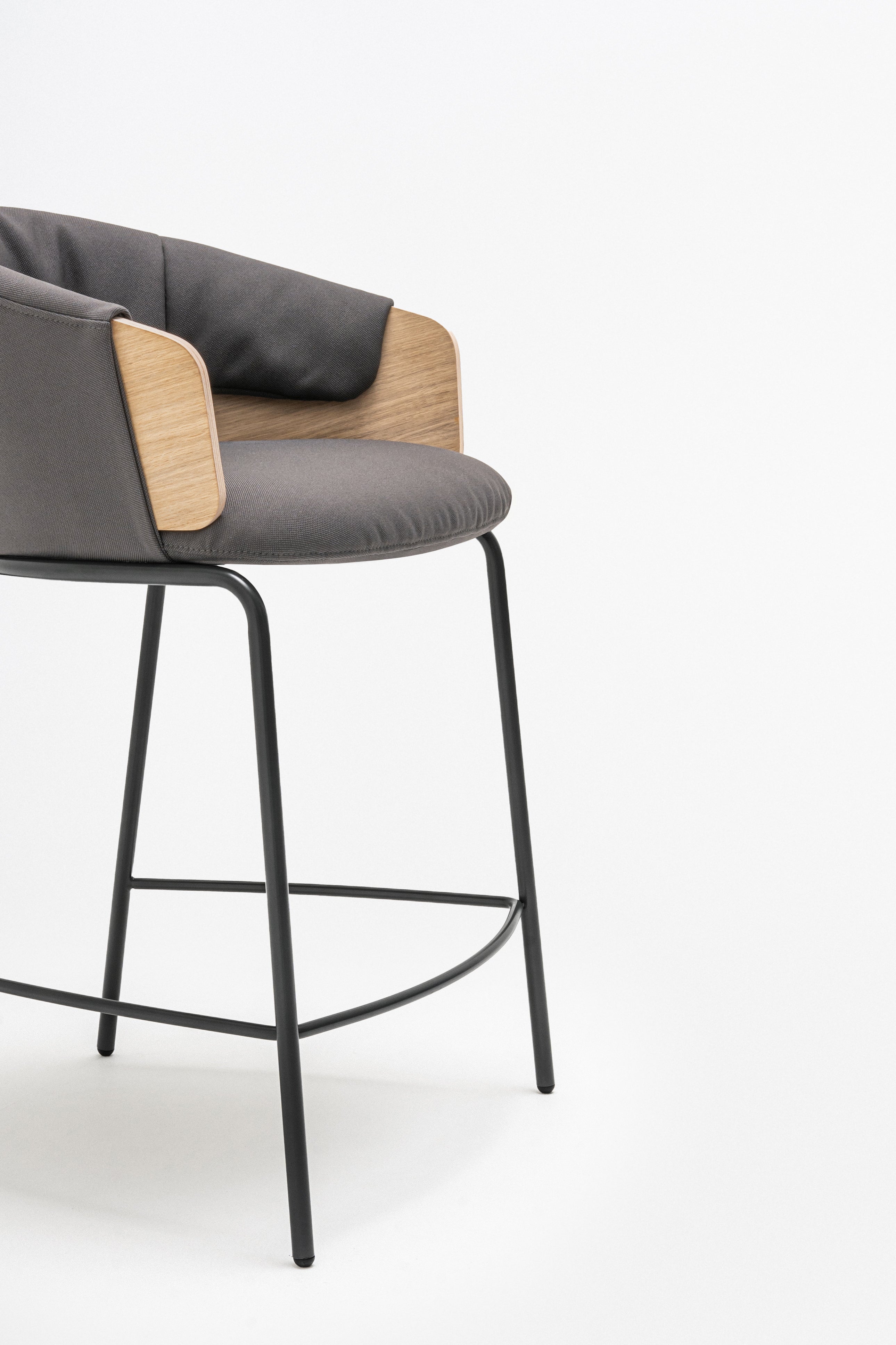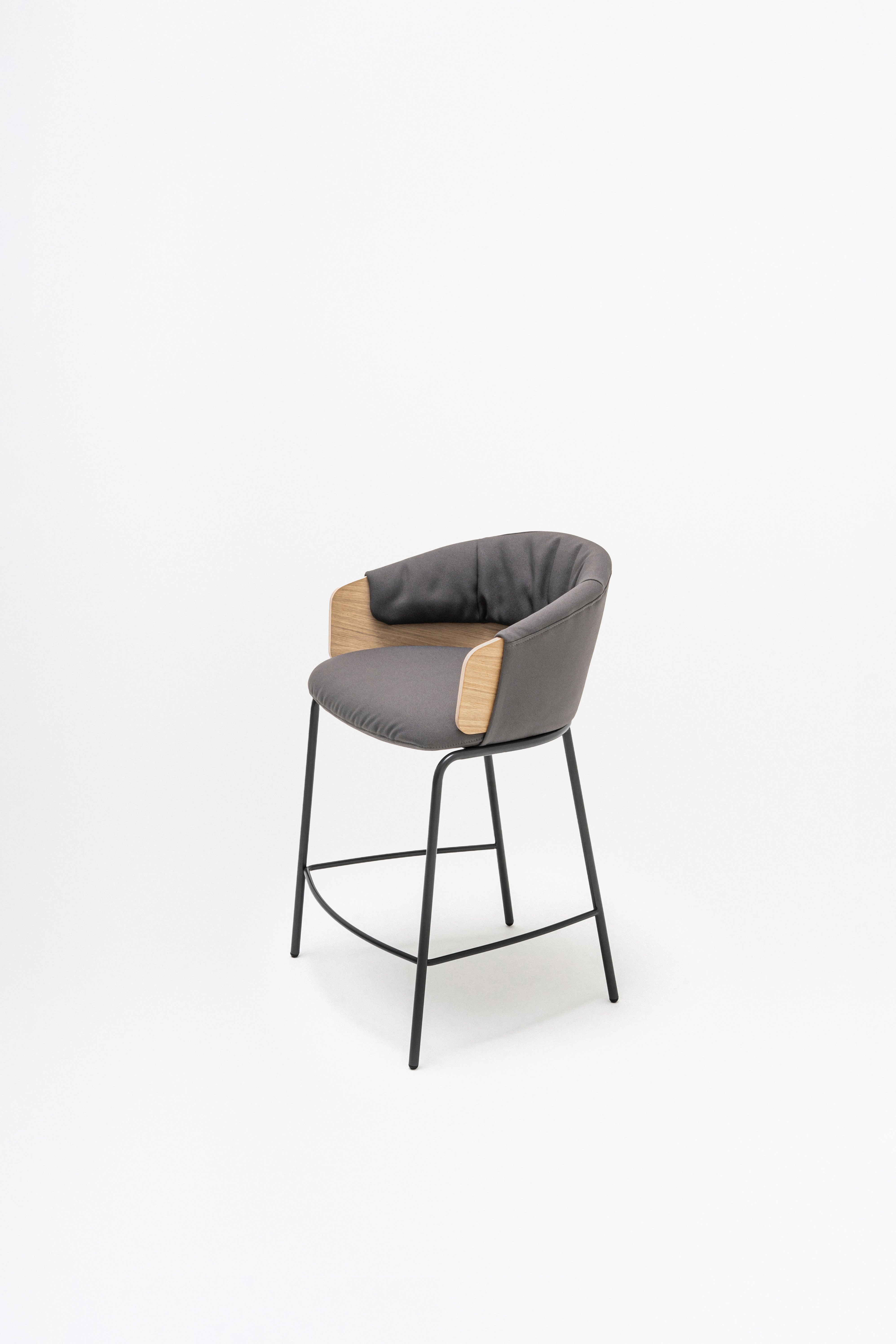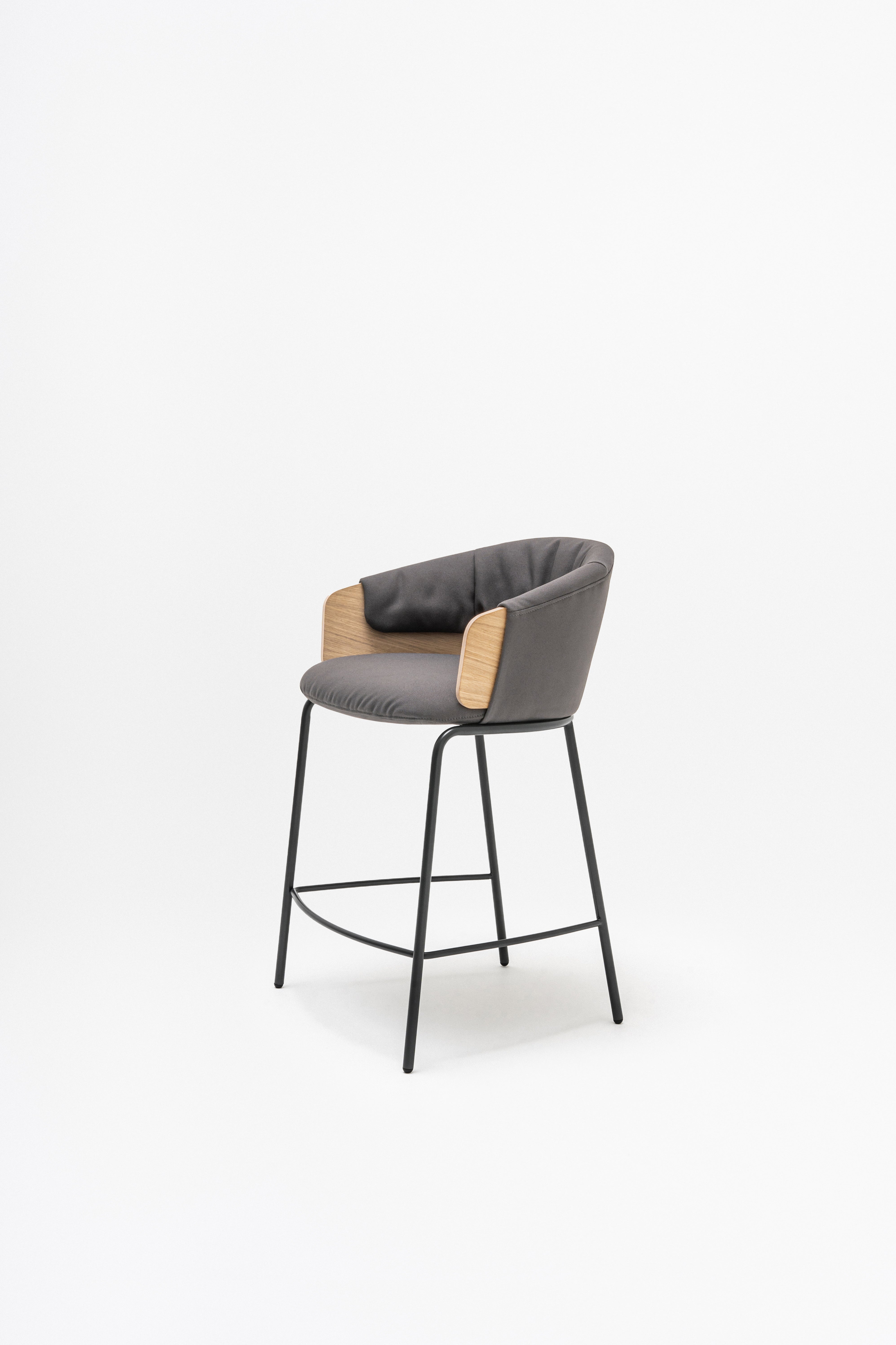 Das Kragen bietet auch eine Auswahl zwischen vier legierten und Skid -Basis, mit der Sie den Roller an verschiedene Räume und individuelle Bedürfnisse anpassen können. Die integrierte Fußstütze erhöht den Komfort weiter und unterstützt die Füße. Elegante Stichkissen im Gegensatz zu der Rohheit von Holzdetails und verleihen der Hoch -Leichtigkeit. Das Kragen wurde für Küchen, Bars, Esszimmer sowie öffentliche Räume wie Büros, Kantinen und Restaurants entwickelt.