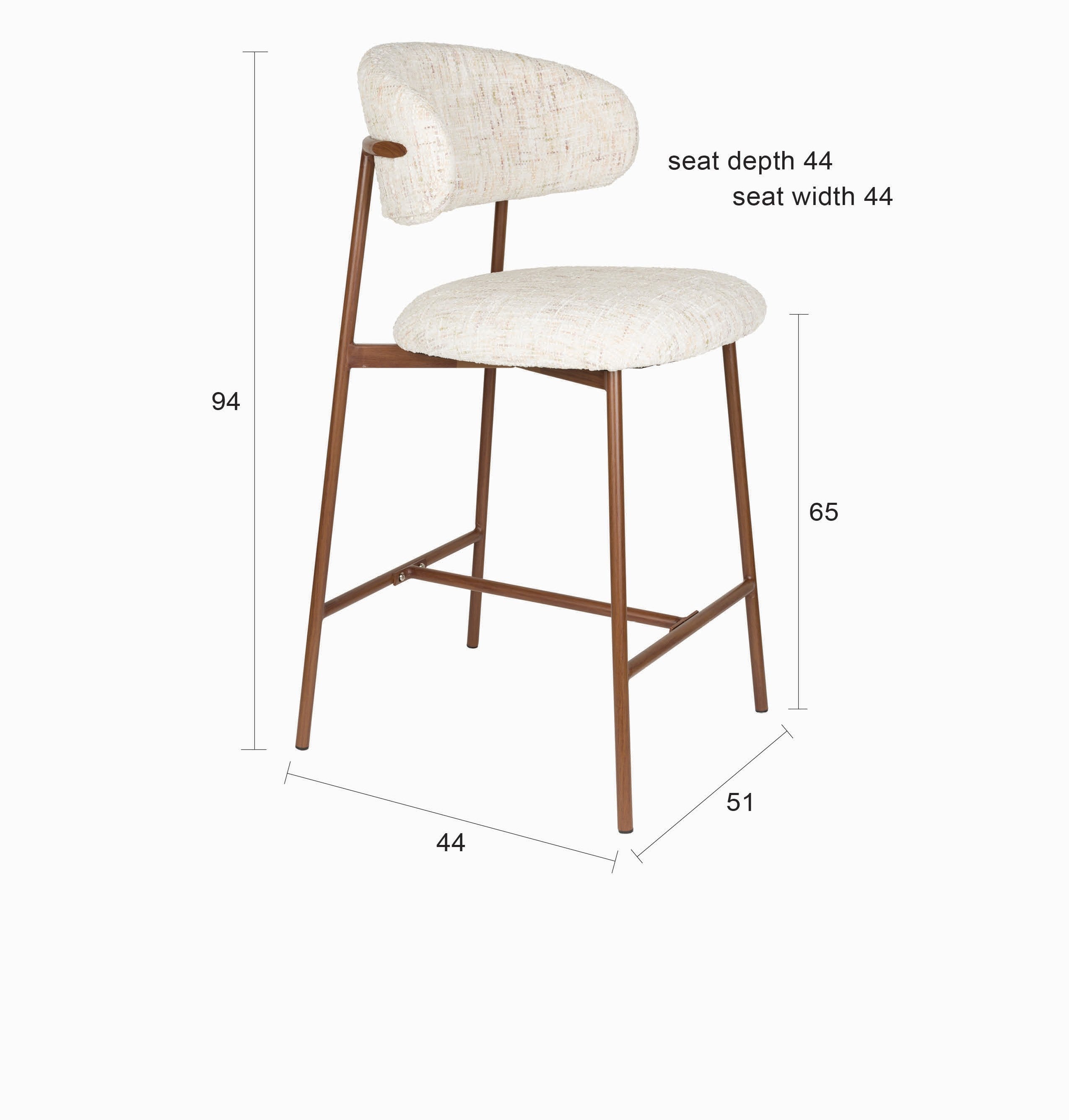 Barstuhl CLAES hellbeige Melange mit braunem Gestell