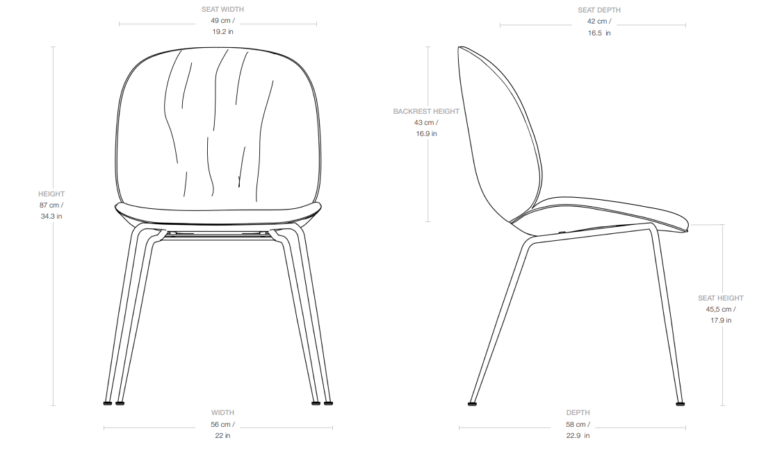 Stuhl BEETLE SOFT gepolstert mit messingfarbener Basis