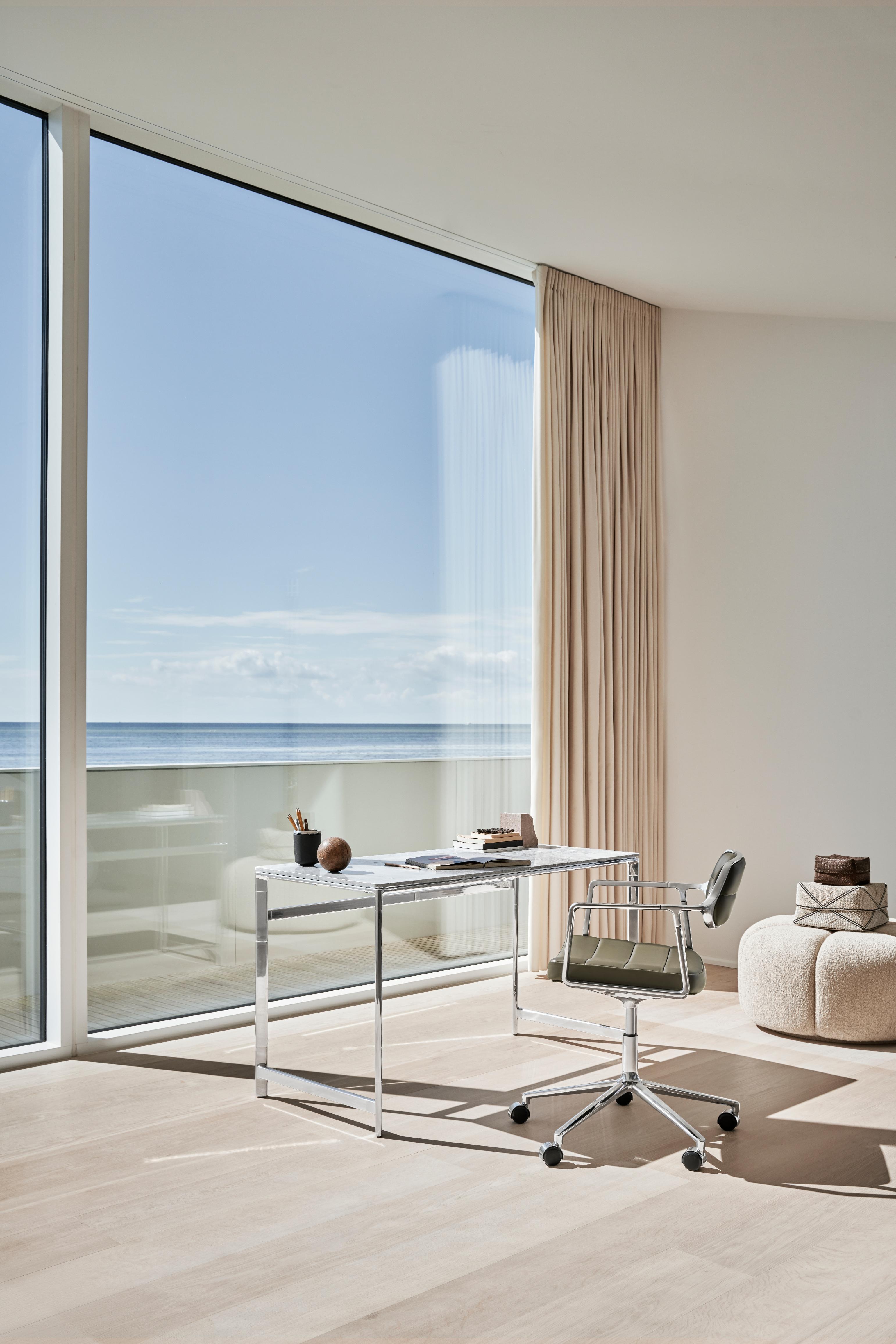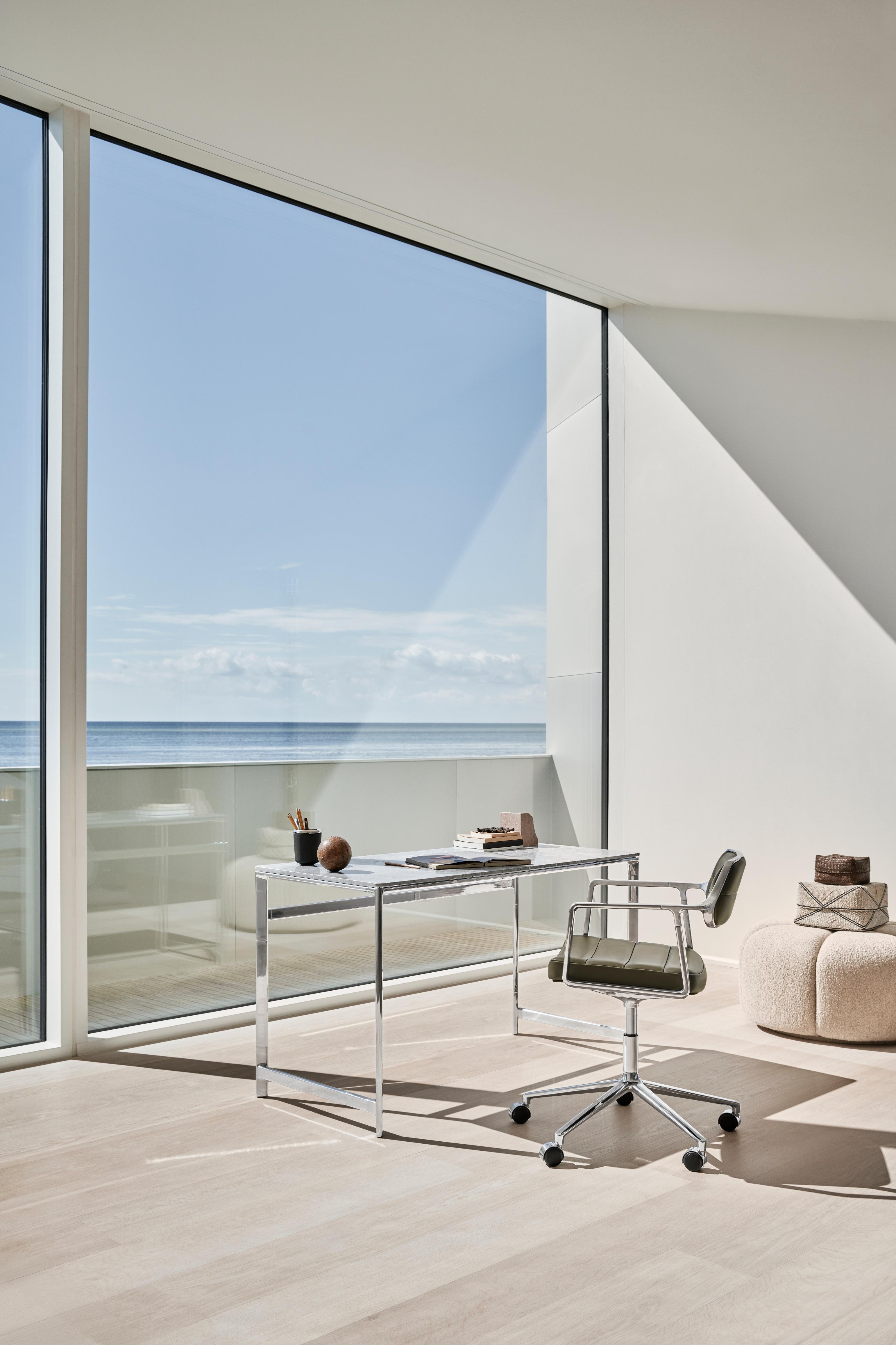 Materiały: Polerowane aluminium, tkanina tapicerska/skóra
