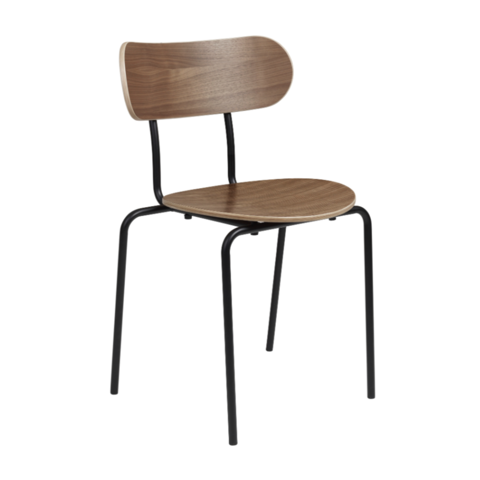 Die Version mit schwarzem Metallgestell und Sitzfläche aus Holz ist in mehreren Oberflächenvarianten erhältlich – schwarz gefärbtes Furnier, lackierte Eiche oder Walnuss. Trotz der leichten Form zeichnet sich der Stuhl Coco durch hohe Strapazierfähigkeit und Benutzerkomfort aus. Dies ist eine ausgezeichnete Wahl für Menschen, die minimalistisches Design und Praktikabilität schätzen, ohne auf Charakter und Qualität der Verarbeitung zu verzichten.