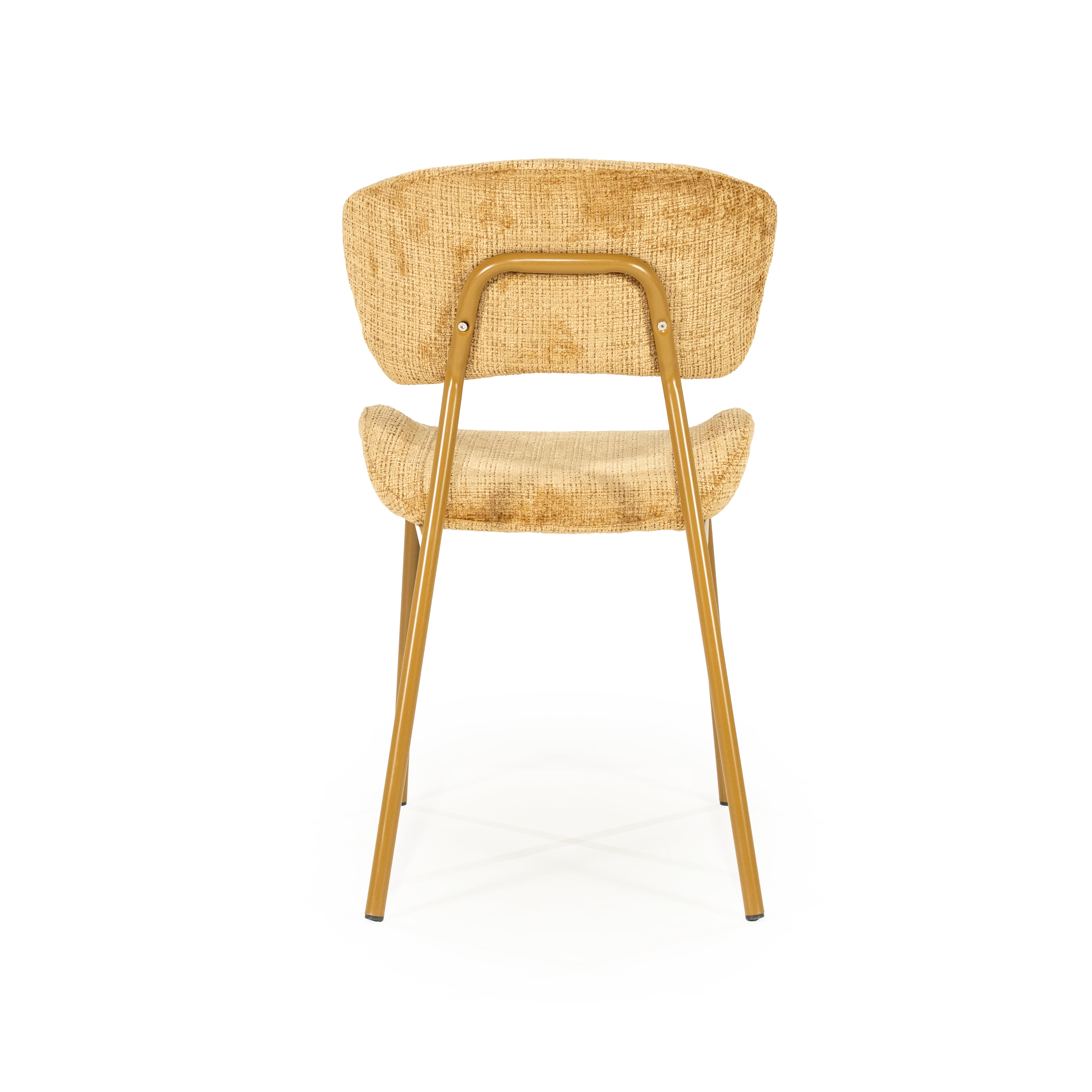Krzesło Dare to stylowe połączenie nowoczesnego wzornictwa i wyjątkowego komfortu. Jego miękkie siedzisko i ergonomiczne oparcie, tapicerowane tkaniną Drift, zapewniają wygodę nawet podczas długiego siedzenia. Smukłe, metalowe nogi nadają konstrukcji lekkości i stabilności, a ich delikatne wykończenie w matowym połysku dodaje całości eleganckiego charakteru.