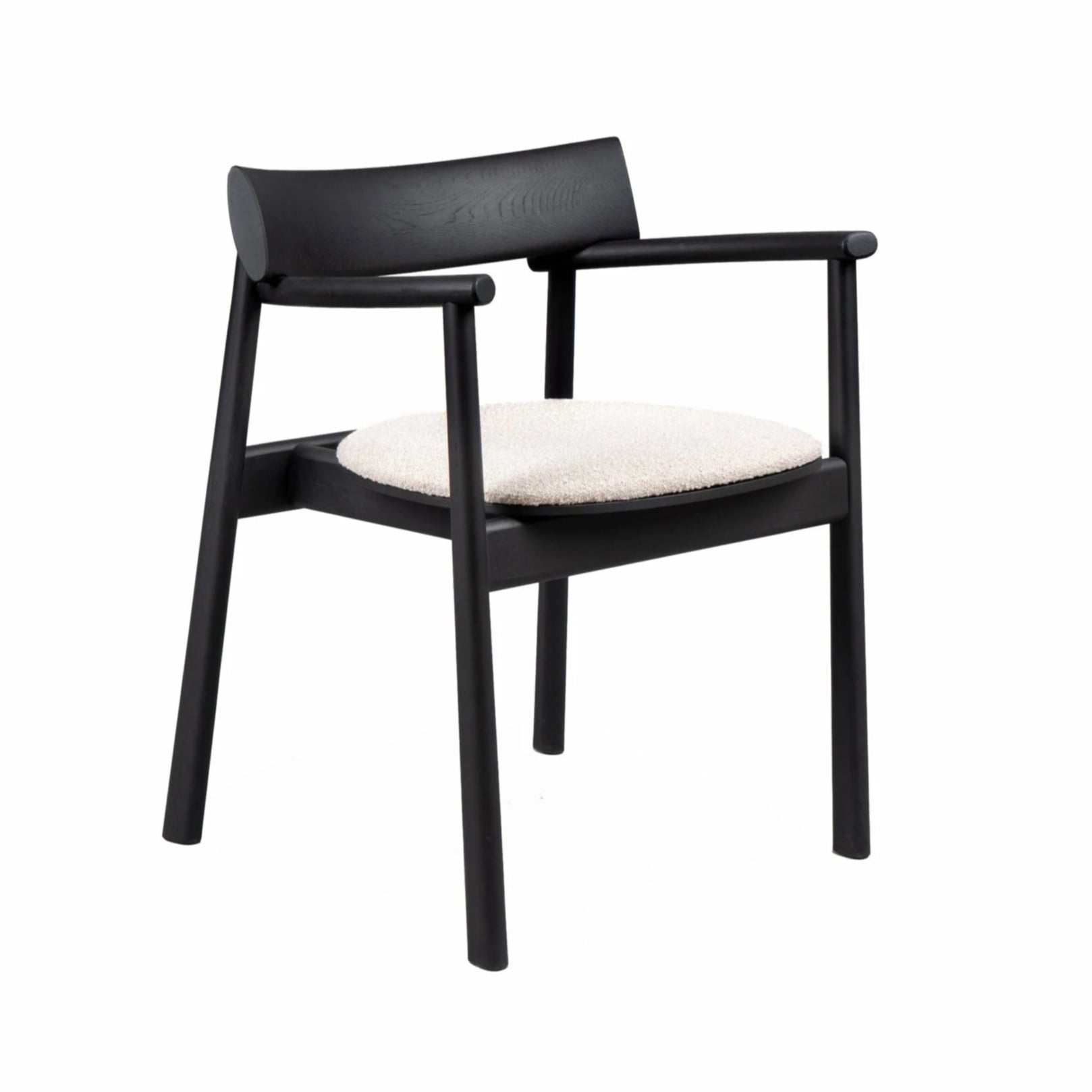 Stuhl Elipsa Soft ist eine Weiterentwicklung der Idee einer fließenden, organischen Form, bereichert durch einen weichen, gepolsterten Sitz aus Boucle-Stoff. Harmonische Proportionen und elliptische Linien verbinden sich hier mit gemütlichem Komfort und schaffen ein Möbelstück, das Ästhetik des handwerklichen Designs mit der Funktionalität des täglichen Gebrauchs vereint. Subtil geneigte Armlehnen und präzise geformte Rückenlehnen unterstützen den Körper, während der weiche Bezug zum langen Sitzen einlädt.