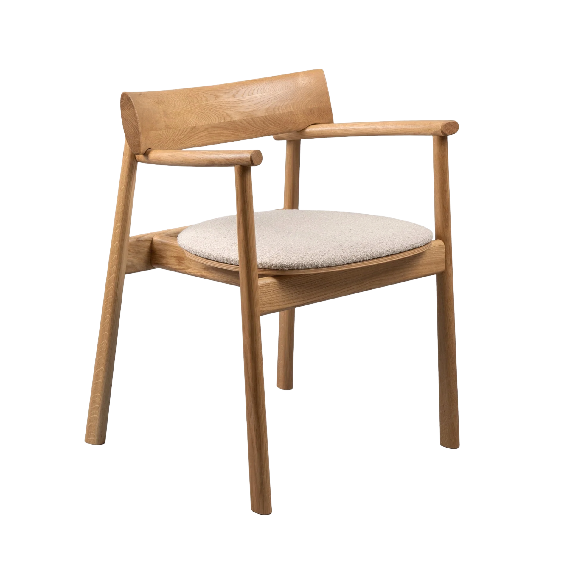 Stuhl ELIPSA SOFT aus Eichenholz und sandfarbener Boucle
