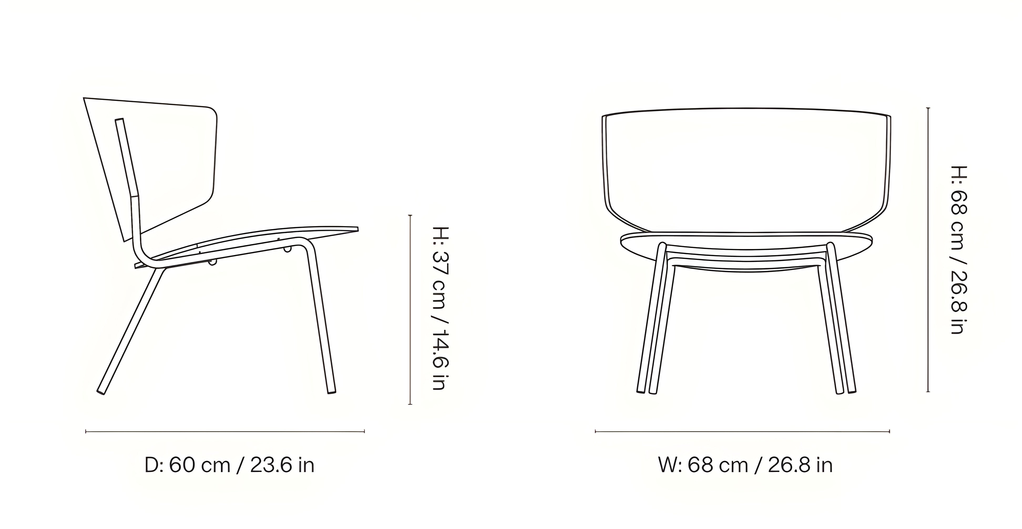 Der Herman Loungesessel ist eine stilvolle Erweiterung der beliebten Herman Stuhlserie. Seine niedrige Struktur mit pulverbeschichtetem Stahlrahmen wird durch eine breite, ovale Sitzfläche und eine dezent geschwungene Rückenlehne ergänzt, die sich dem Körper anschmiegt und für maximalen Komfort sorgt. Hergestellt aus lackiertem, FSC™-zertifiziertem Holzfurnier, verbindet der Sessel moderne Optik mit ökologischer Verantwortung.