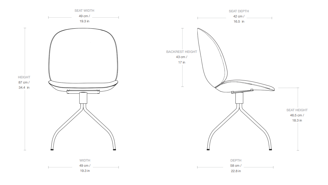 Drehstuhl BEETLE gepolstert mit schwarzem Fuß