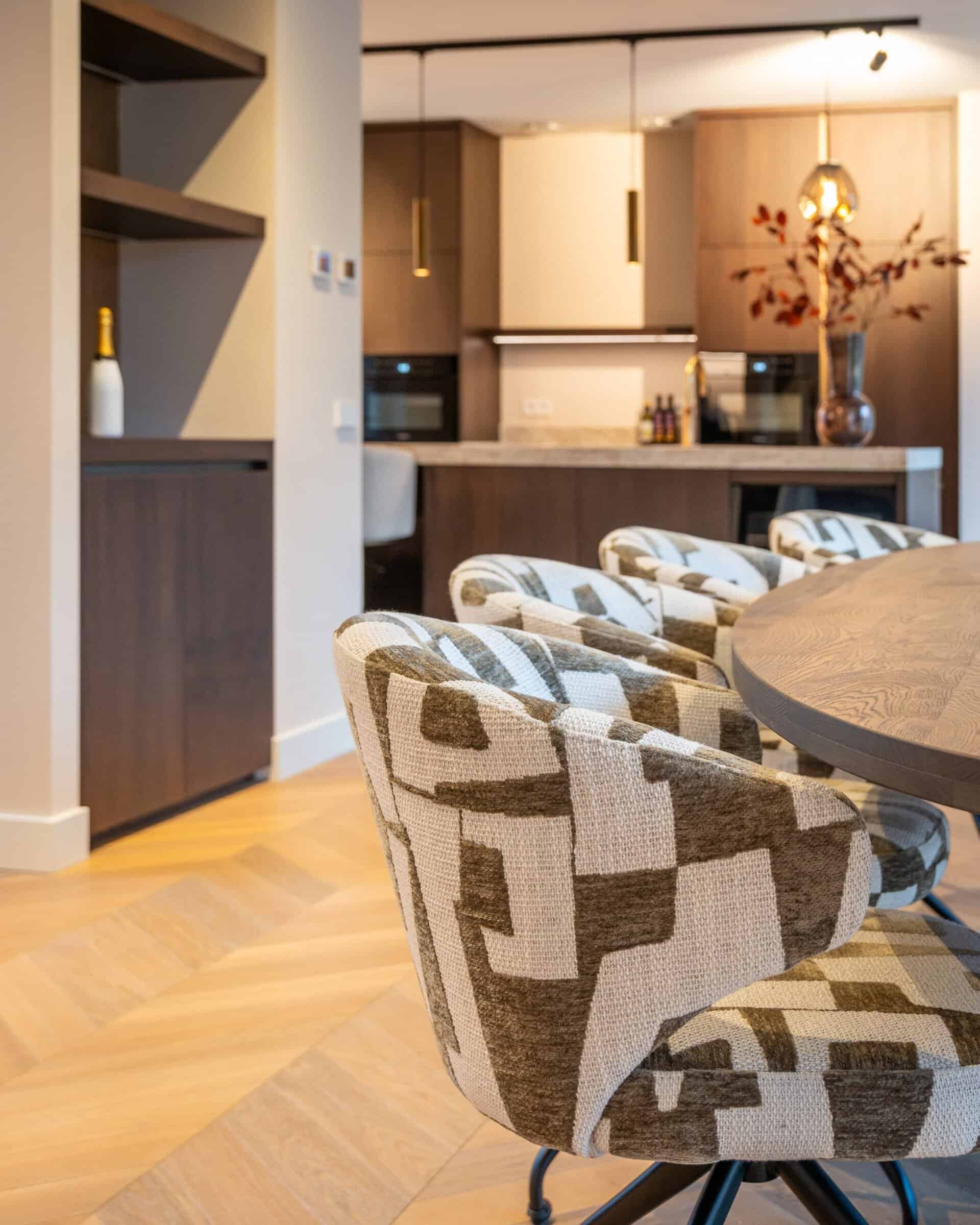 Drehstuhl Milly zeichnet sich durch sein weiches und einladendes Aussehen aus, das Wärme und Komfort in Ihr Zuhause bringt. Das beige-braune Muster verleiht dem Raum einen gemütlichen, warmen Akzent, und die Drehfunktion sorgt für eine einfache Handhabung, die freies Manövrieren ermöglicht. Die elegante Silhouette des Stuhls vereint Komfort mit raffiniertem Design, was ihn zur perfekten Wahl sowohl für Wohnräume als auch für formellere Projekte macht, in denen Flexibilität entscheidend ist.
