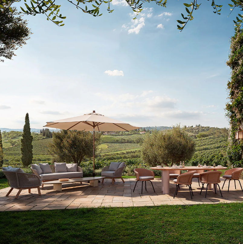 Außenstuhl Nolan vereint Eleganz und Komfort und verwandelt Ihren Außenbereich. Die schwarzen Beine sorgen für Langlebigkeit und Stabilität und schaffen ein Möbelstück, das nicht nur bequem ist, sondern auch subtile Eleganz in jeden Garten oder auf jede Terrasse bringt. Eine ausgezeichnete Wahl für diejenigen, die zeitloses Design und hohe Qualität schätzen.