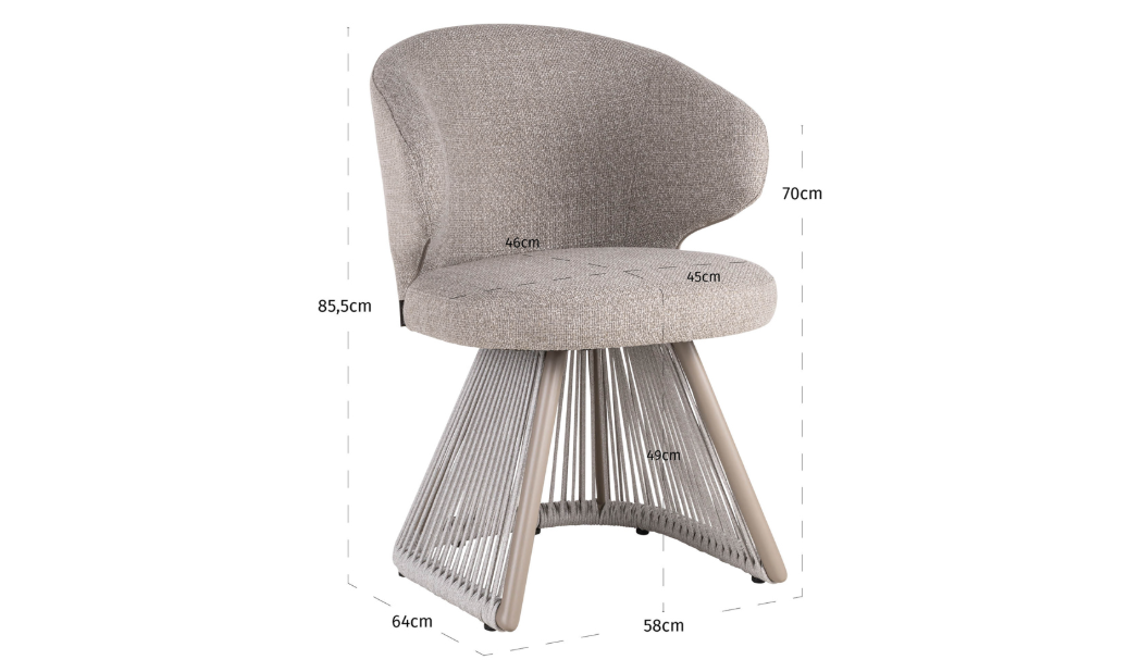 Außenstuhl Nuba ist eine elegante Wahl, die sich durch die Kombination von modernem Design und Funktionalität auszeichnet. Das handgewebte Olefin-Seil, das UV-beständig ist, zusammen mit dem Aluminiumrahmen sorgt für Langlebigkeit und Wetterbeständigkeit, was diesen Stuhl zur perfekten Wahl für Gärten, Terrassen und Außenbereiche macht. Das schnell trocknende Sitzkissen sorgt für zusätzlichen Komfort, und sein universelles Design fügt sich harmonisch in verschiedene Arrangements ein. Dies ist die ideale Wahl, um einen Hauch von Hotelstil ins Freie zu bringen.