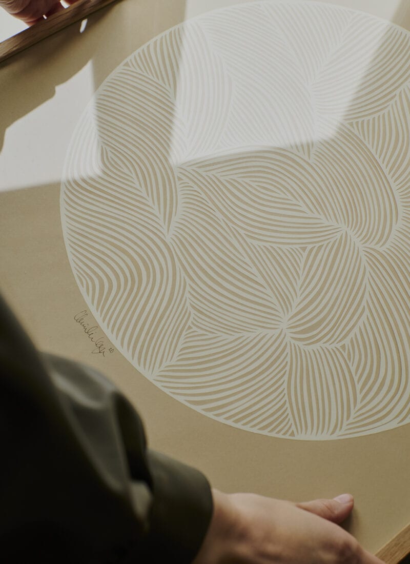 Künstlerischer Druck von hoher Qualität auf Papier mit einem Gewicht von 265 g.