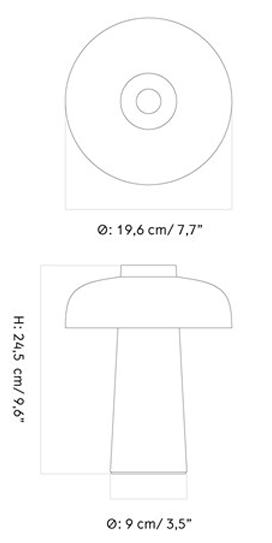 Die Lampe ist mit einem berührungsempfindlichen Dimmer mit drei Helligkeitsstufen ausgestattet, der sich oben am Schirm befindet und eine einfache Anpassung der Lichtintensität an die Bedürfnisse ermöglicht. Dank der integrierten, energieeffizienten LED-Quelle mit warmem Licht eignet sich Reverse hervorragend als sanfte Beleuchtung neben dem Bett oder als dekorativer Akzent auf einer Kommode oder einem Regal. Sie wird über ein magnetisches USB-Kabel betrieben und ist wetterfest, sodass die Lampe auch auf überdachten Terrassen oder Balkonen verwendet werden kann.