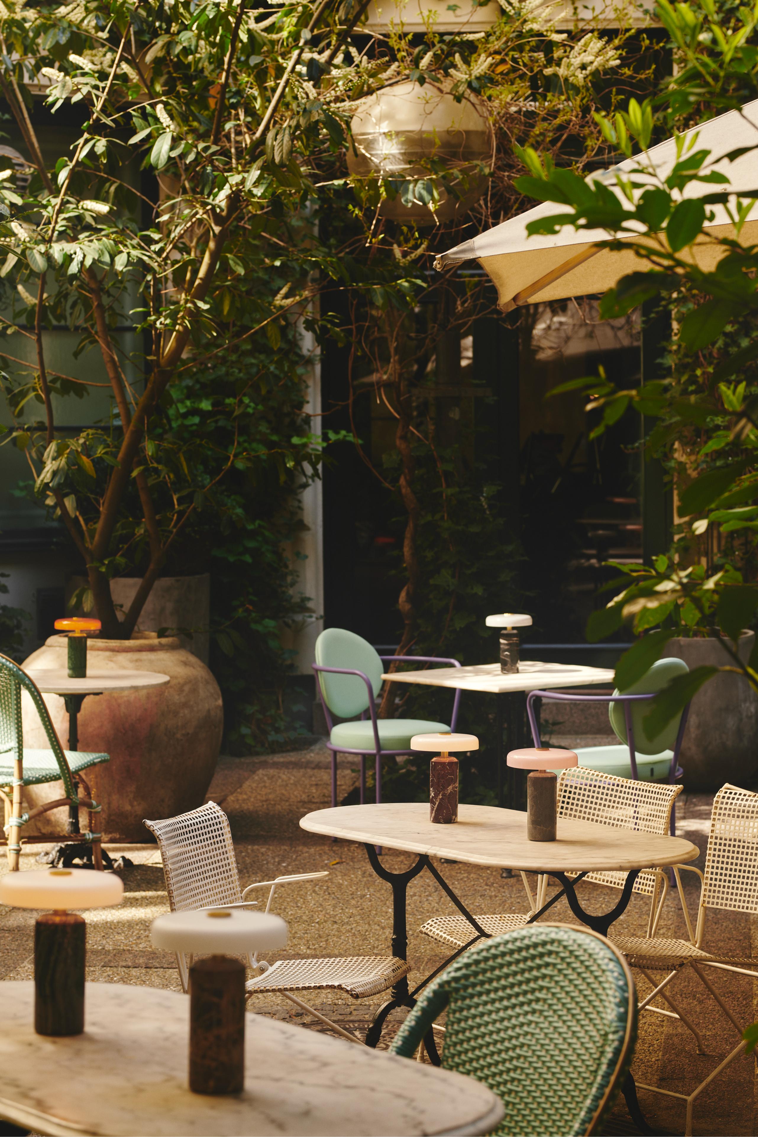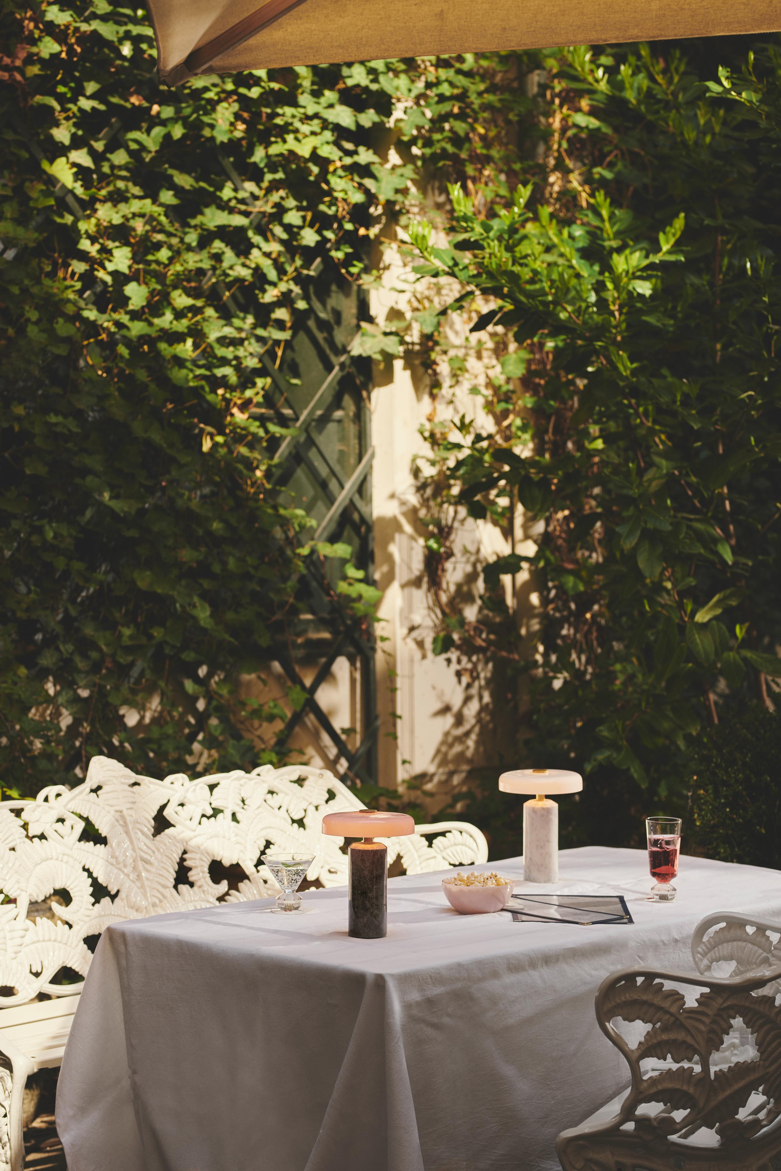 Tragbare Lampe TRIP silberner Marmor mit rosa Glas