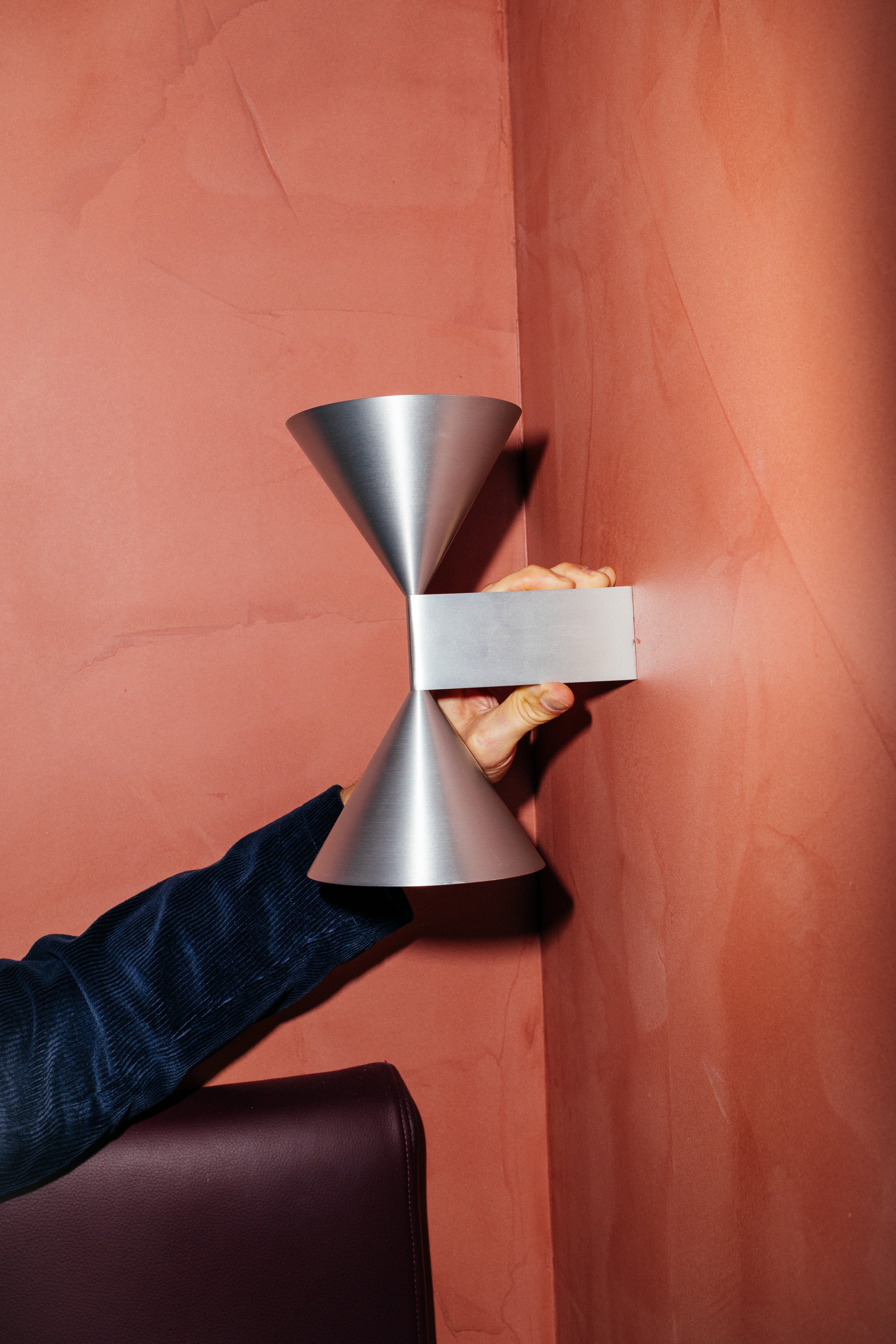 Wandleuchte Apollo Grand ist ein Beleuchtungsvorschlag mit einem markanten, skulpturalen Charakter. Ihre schlanke Silhouette, die auf der Form eines Kegels basiert, erinnert an dynamische Bewegung und Kraft – wie ein sich drehender Gyroskop. Der Schirm, der in einer harmonischen Anordnung balanciert, schafft ein faszinierendes Spiel aus Geometrie und Licht und verleiht dem Raum einen modernen, aber gleichzeitig zeitlosen Ausdruck.