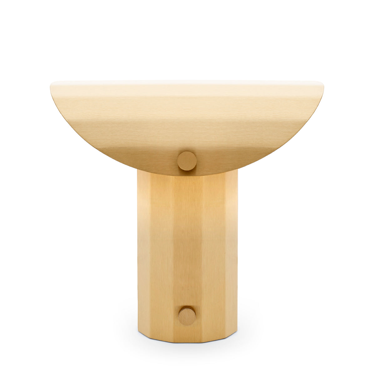 Tischlampe Apolin des Grynasz Studios ist ein außergewöhnliches Beispiel für modernes Design, inspiriert von industriellem Design aus der Mitte des 20. Jahrhunderts. Ihre Form erinnert an Modelle, die in den Werkstätten MEOS und ZAOS geschaffen wurden, und der facettierte Schirm fungiert als Reflektor, der das Licht auf sanfte und stimmungsvolle Weise streut. Die Konstruktion aus profiliertem, gebürstetem Messing fügt sich harmonisch in die modernistische Ästhetik ein und bringt einen warmen, edlen Akzent in den Raum. Die Tischlampe verfügt über einen integrierten Dimmer, der eine Anpassung der Lichtintensität ermöglicht, was sie praktisch und komfortabel für den täglichen Gebrauch macht.