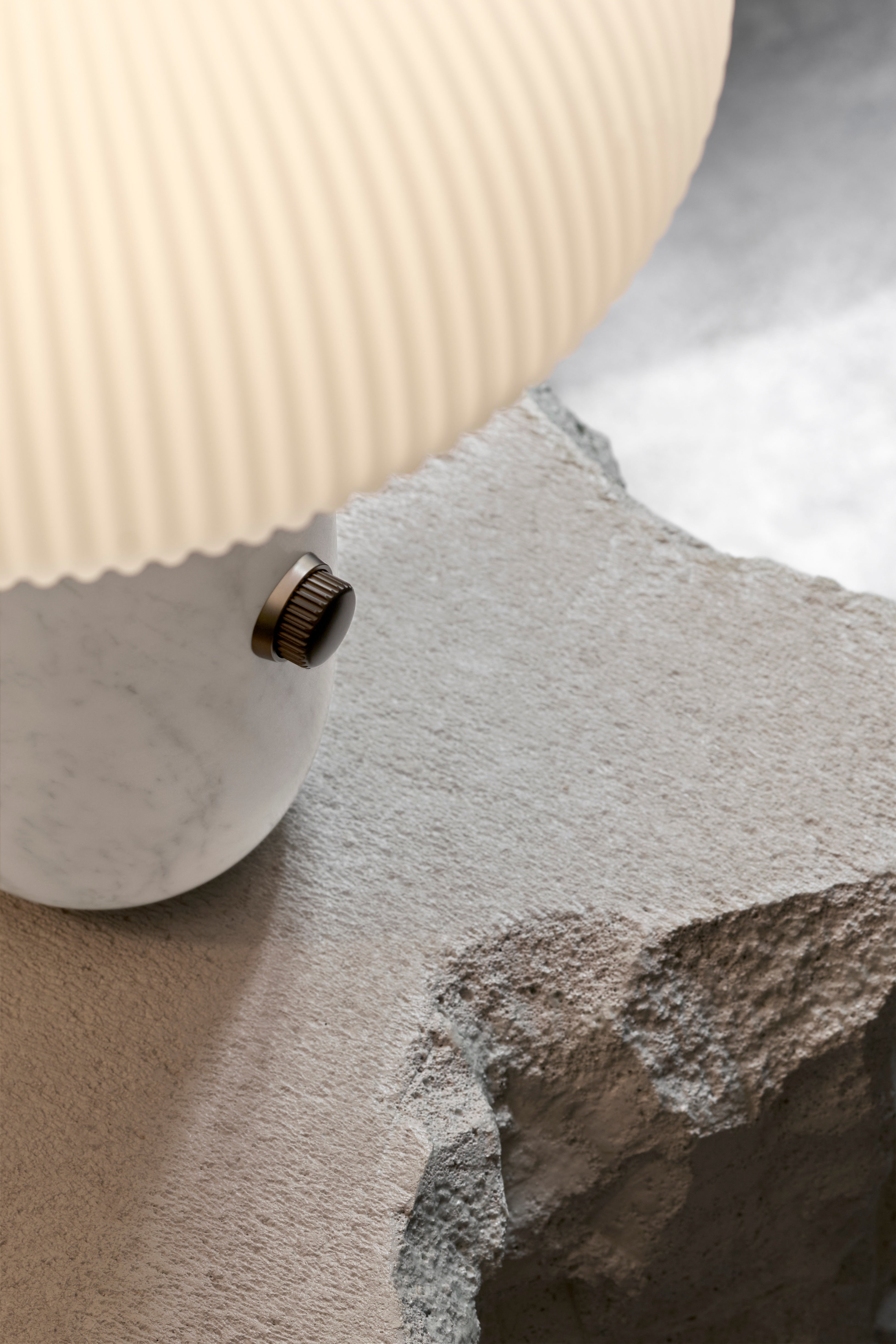 Tischlampe Sculpture ist eine elegante Verbindung von Funktionalität und dekorativem Charakter. Diese Tischlampe wurde entworfen, um stimmungsvolles Licht im Wohnzimmer oder Schlafzimmer zu schaffen, indem handgeformtes Glas mit einer massiven Marmorbasis kombiniert wird. Der dreischichtige, opalene Schirm streut das Licht sanft und sorgt für eine gemütliche Atmosphäre, während die minimalistische Form dafür sorgt, dass die Tischlampe auch als eindrucksvolle Skulptur im Raum fungiert. Dank des präzise integrierten Dimmers kann die Lichtintensität einfach angepasst werden, um sie an die aktuelle Stimmung anzupassen.