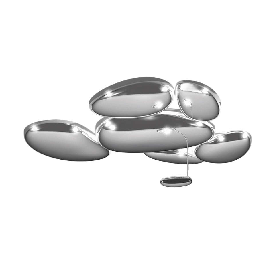 Deckenleuchte Skydro ist ein designorientierter Vorschlag von Ross Lovegrove und stellt eine Weiterentwicklung der ikonischen Serie Hydro dar. Ihre biomorphe Form, die an lichtreflektierende Steine erinnert, schafft eine beeindruckende Lichtkomposition an der Decke, die sowohl durch ihr Design als auch durch den visuellen Effekt begeistert. Die Deckenleuchte Skydro eignet sich hervorragend als zentrales Element moderner Innenräume – von Wohnräumen bis hin zu gewerblichen Bereichen.